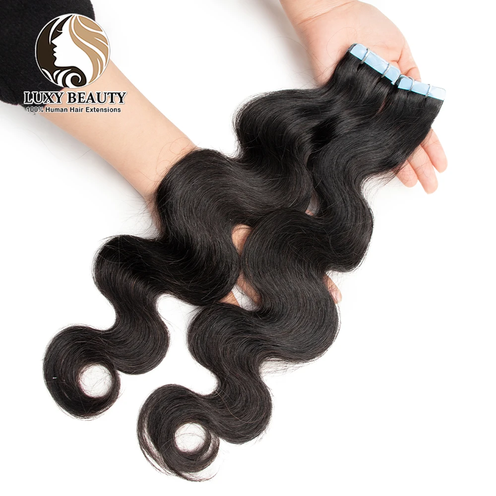 Накладные человеческие волосы с лентой для наращивания для черных женщин Пряди волнистых волос, клейкие невидимые натуральные черные волосы для наращивания