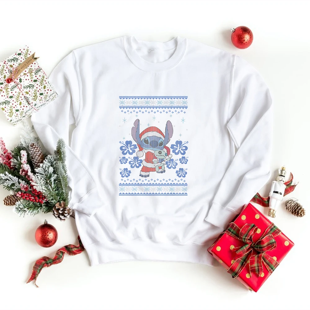 Рождественское платье Kawaii Stitch, белая детская толстовка с принтом, удобные популярные детские топы, повседневные стильные толстовки, пуловеры