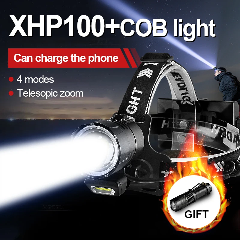 Суперяркий XHP199 + COB свет налобный фонарь перезаряжаемый мощный ...