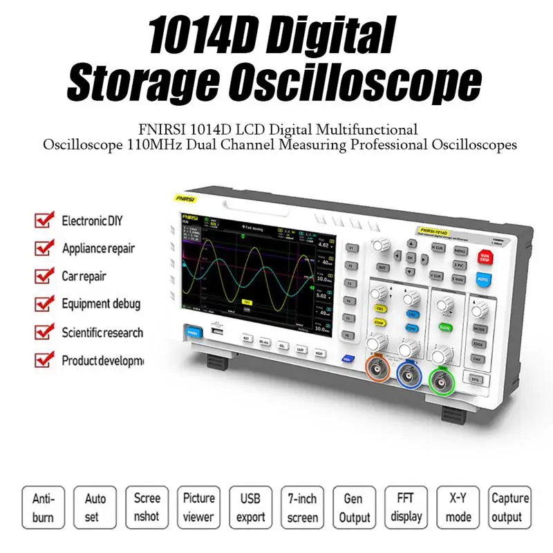 Fnirsi 1014D Настольный осциллограф цифровой USB ПК 2-канальный осц...
