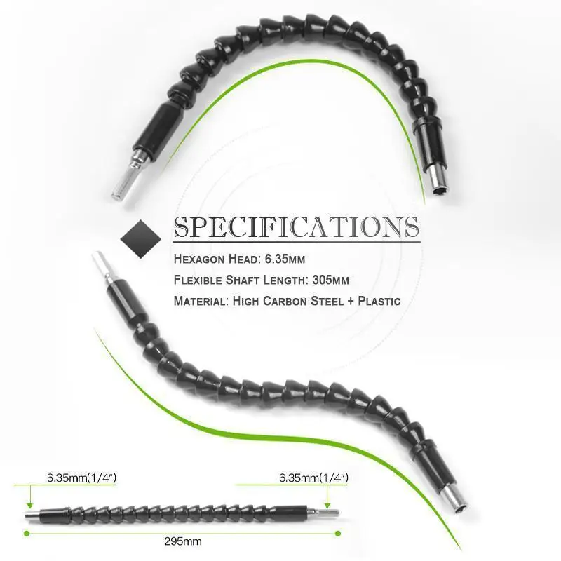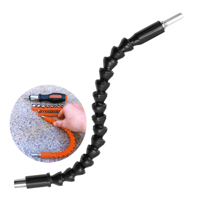 Легкая замена. Совместим с небольшим гаечным ключом, аккумуляторной отверткой, пневматической отверткой, сверлом крутящего момента, электрической отверткой. Гибкая дрель удлинитель отвертка со многими сценариями применения.
