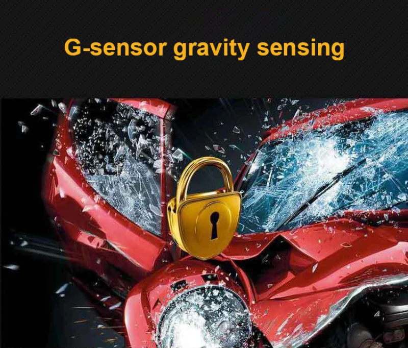 2. Встроенный g-датчик обнаружения, при внезапном перемещении/столкновении, текущее видео будет автоматически заблокировано, чтобы предотвратить перезапись, так что это удобно, чтобы действительно восстановить место аварии.