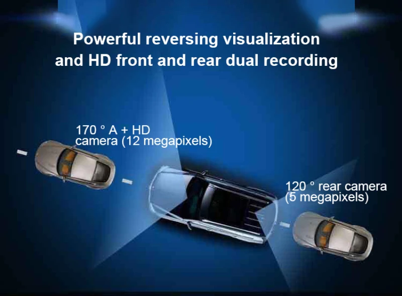 1. Двойная запись спереди и сзади, оснащенная широкоугольной камерой 170 градусов и усовершенствованным датчиком разрешения FHD 1080P, может запечатлеть все ваши процессы вождения с четкостью независимо от дня или ночи.