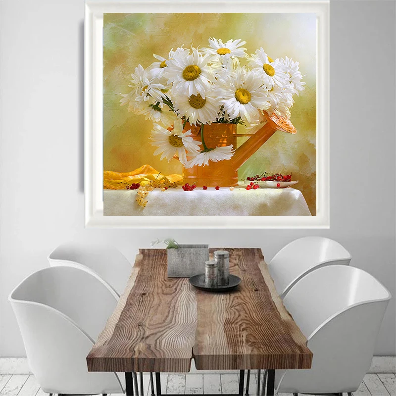 5D алмазная живопись сделай сам, цветы, ромашки, полная круглая моз...