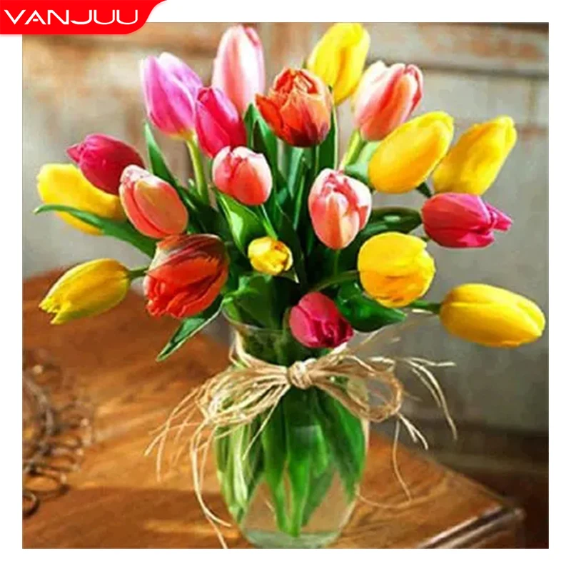 VANJUU 5D алмазная живопись, цветы, круглые бриллиантовые фотонабор...