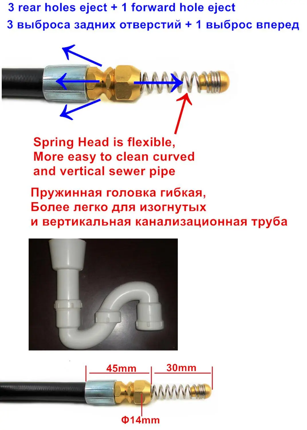 Специальное предложение: насадка с пружинной головкой делает ее более легкой для изогнутых труб.