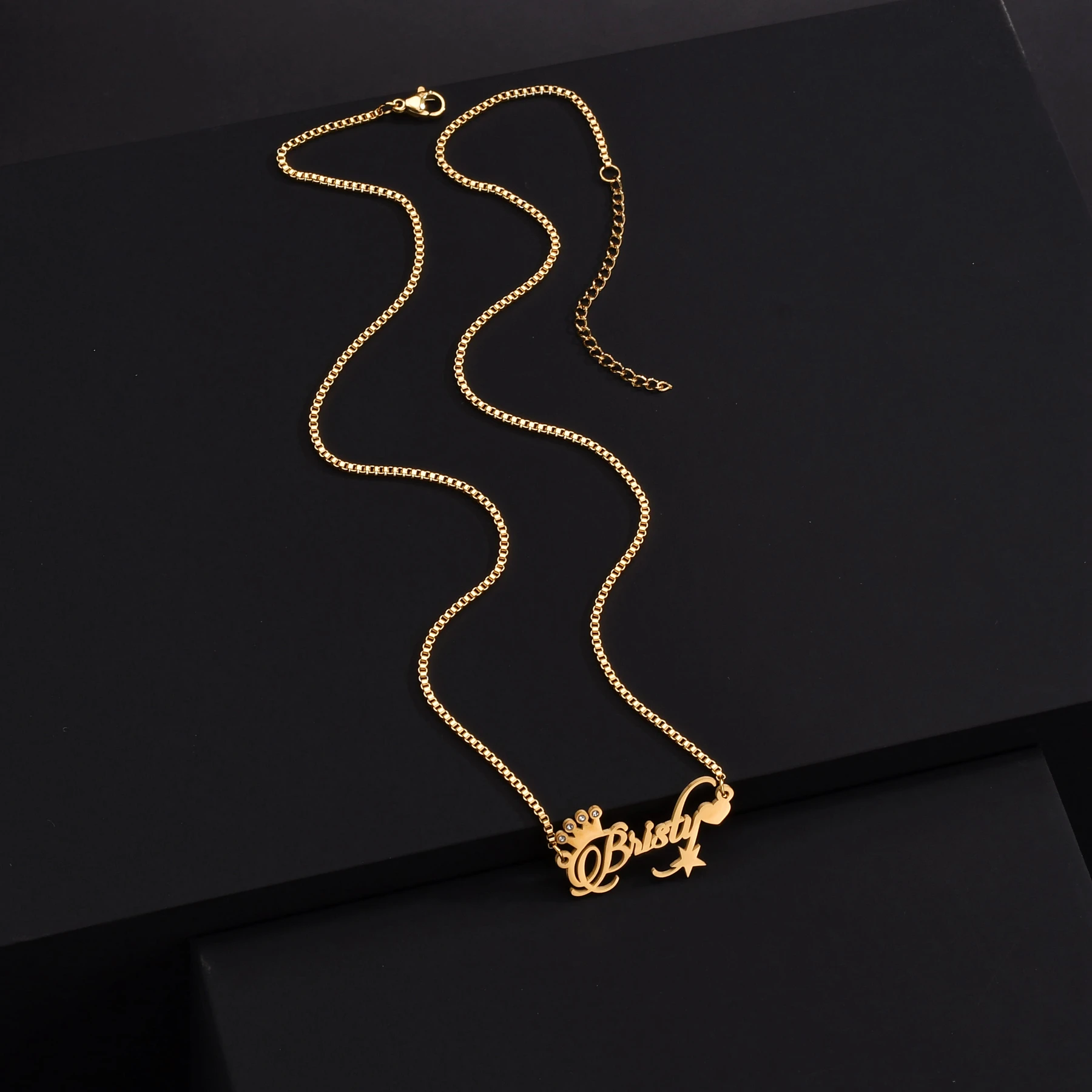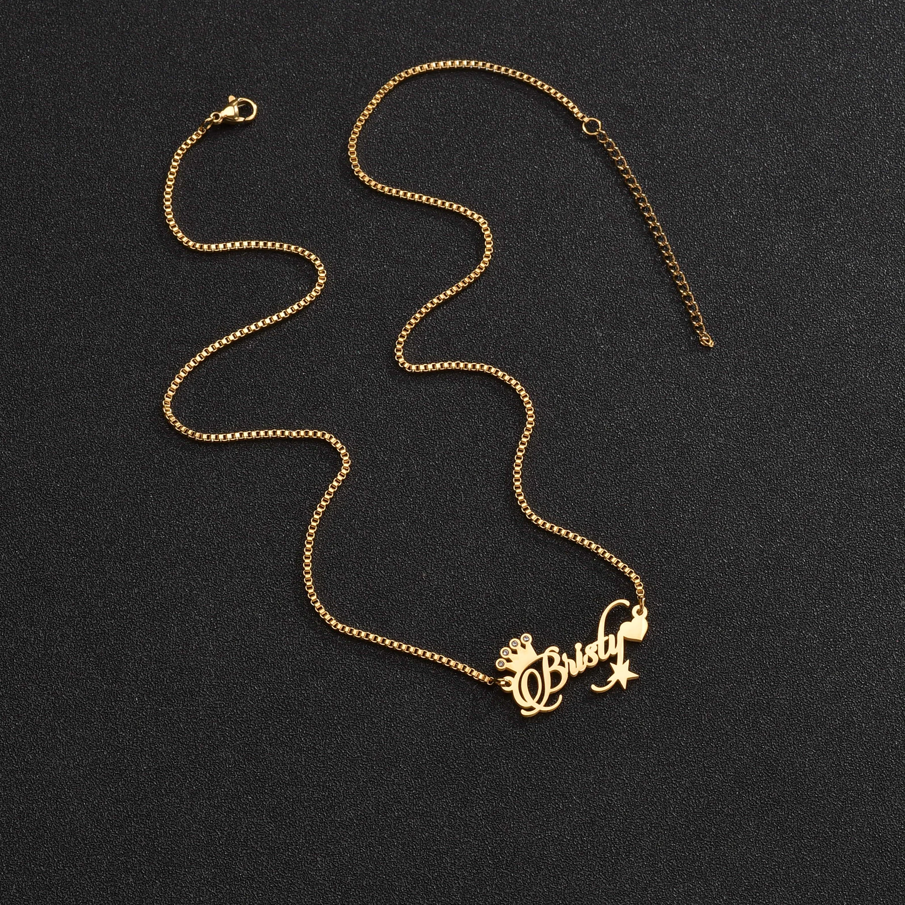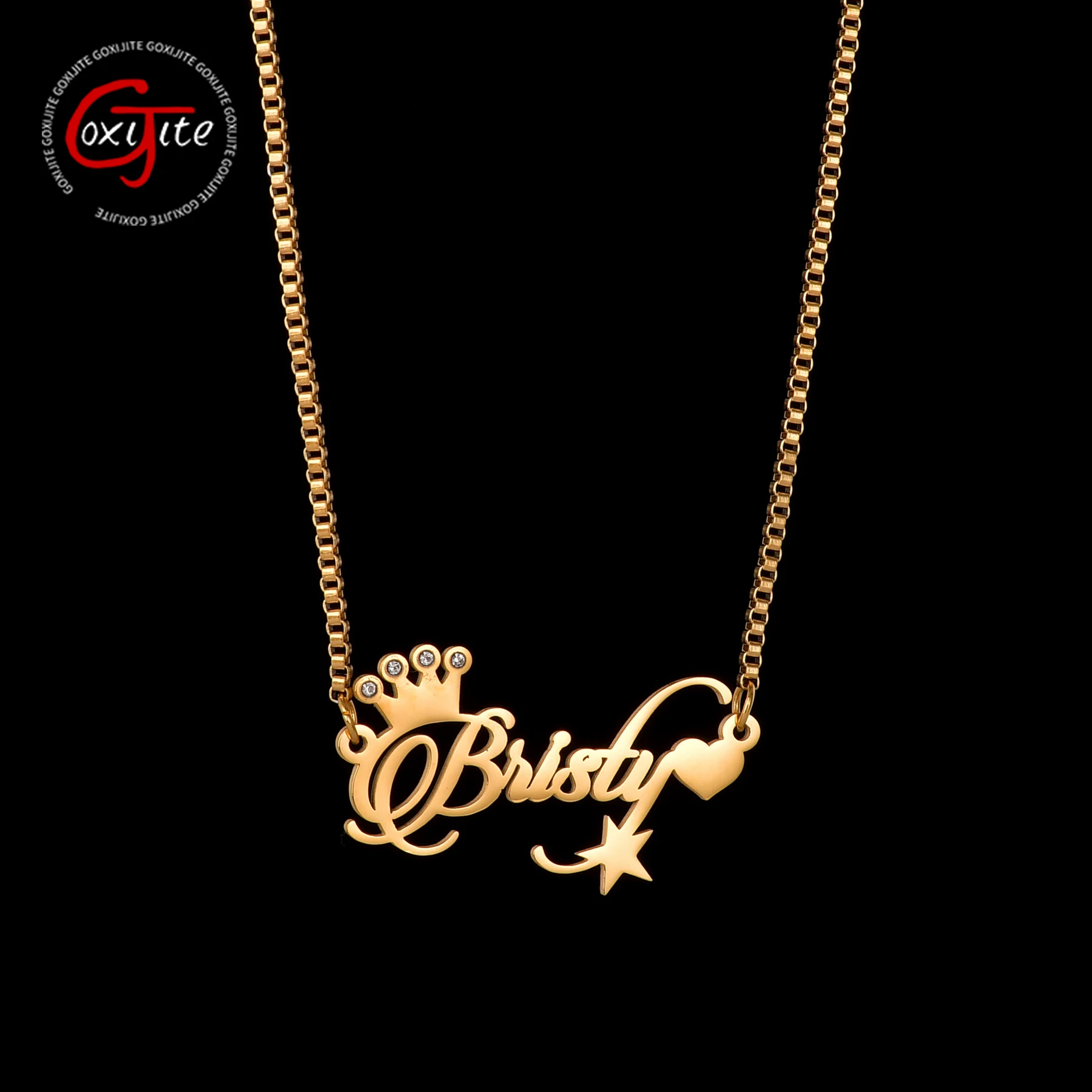 Goxijite ожерелье с именем на заказ для девочки из нержавеющей стали с камнями в форме сердца и короны ожерелья с буквой ювелирные изделия подарок на день рождения
