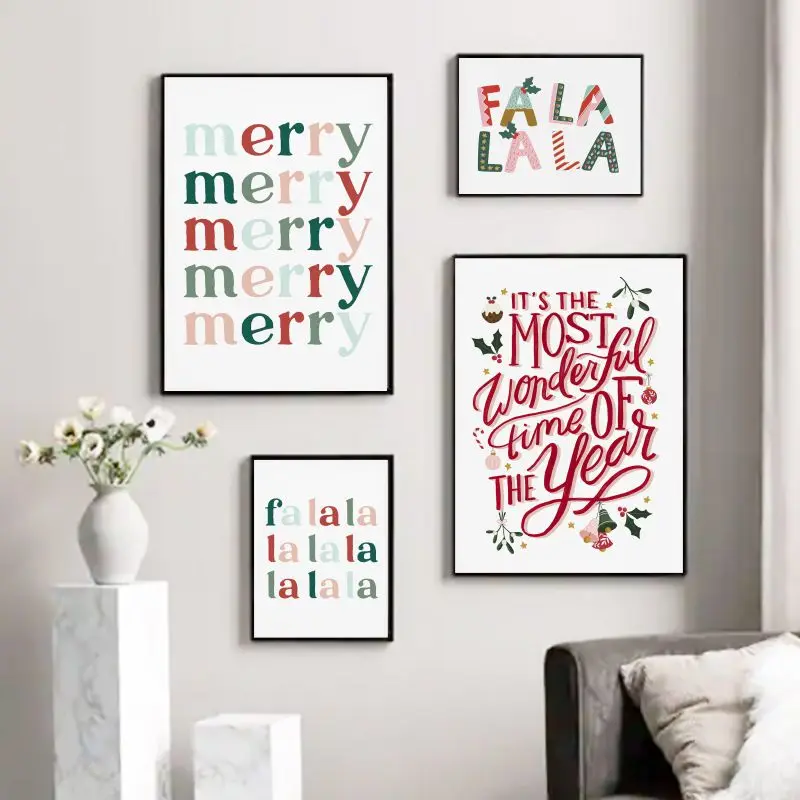 Рождественский Декор холст картина счастливый праздник цитаты печать картина мультфильм счастливая Рождество Вечеринка плакат комната настенное Искусство Декор