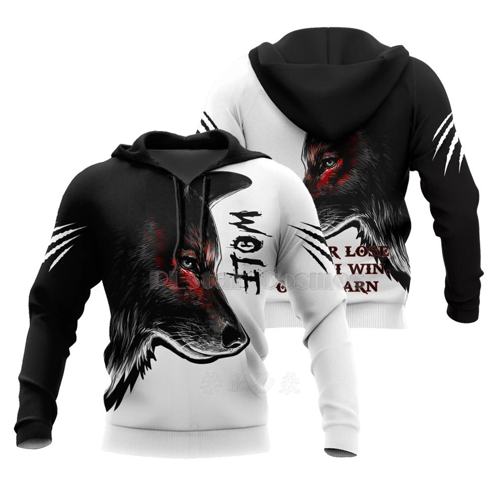 Мужская толстовка с 3D-принтом волка, Повседневный пуловер в стиле ...