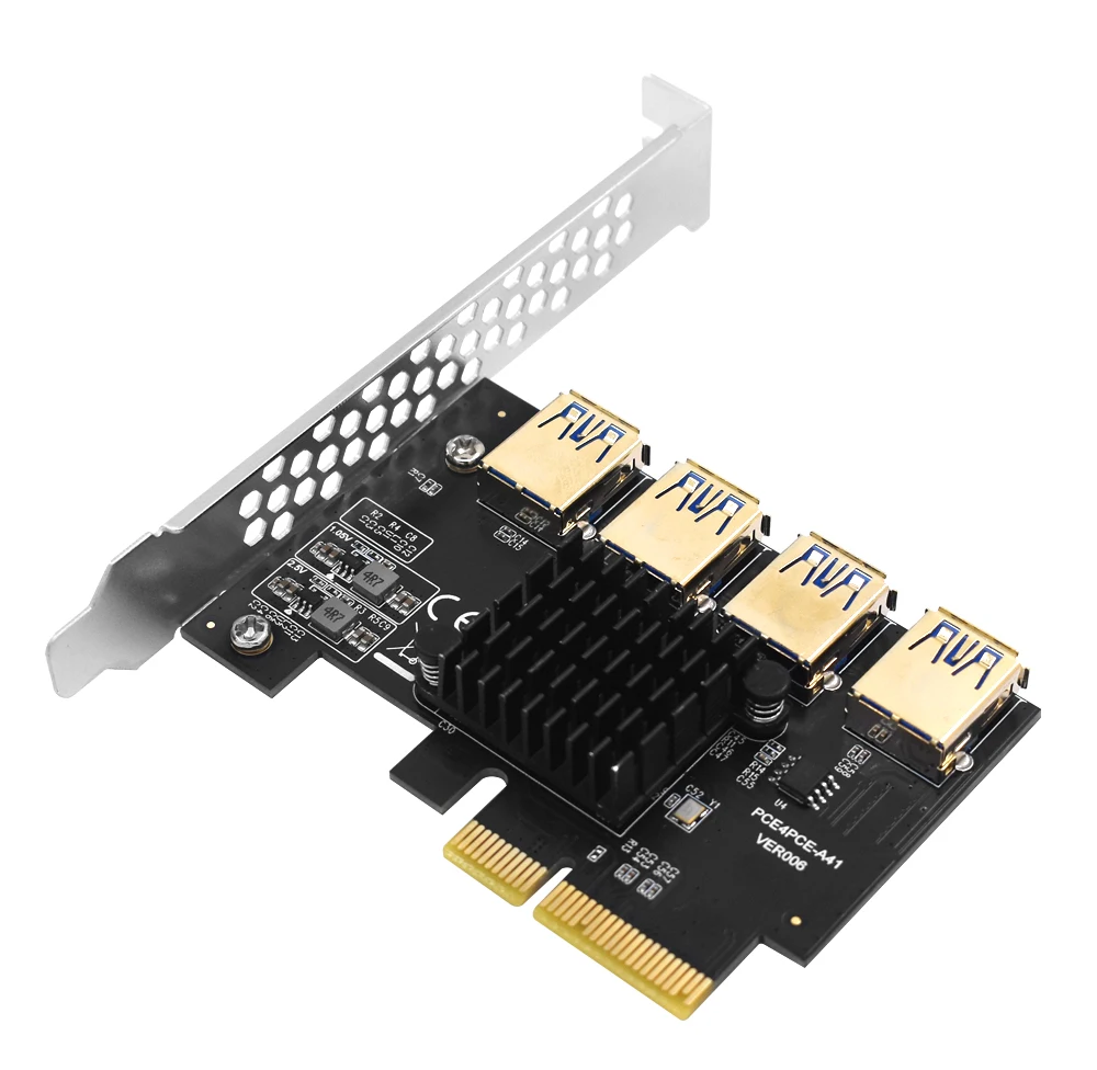 TISHRIC PCI Express мультипликатор PCIE 1 до 4 PCI мультипликатор концентратор 4X до 4 USB 3,0 адаптер PCIE Riser для видеокарты Miner Mining