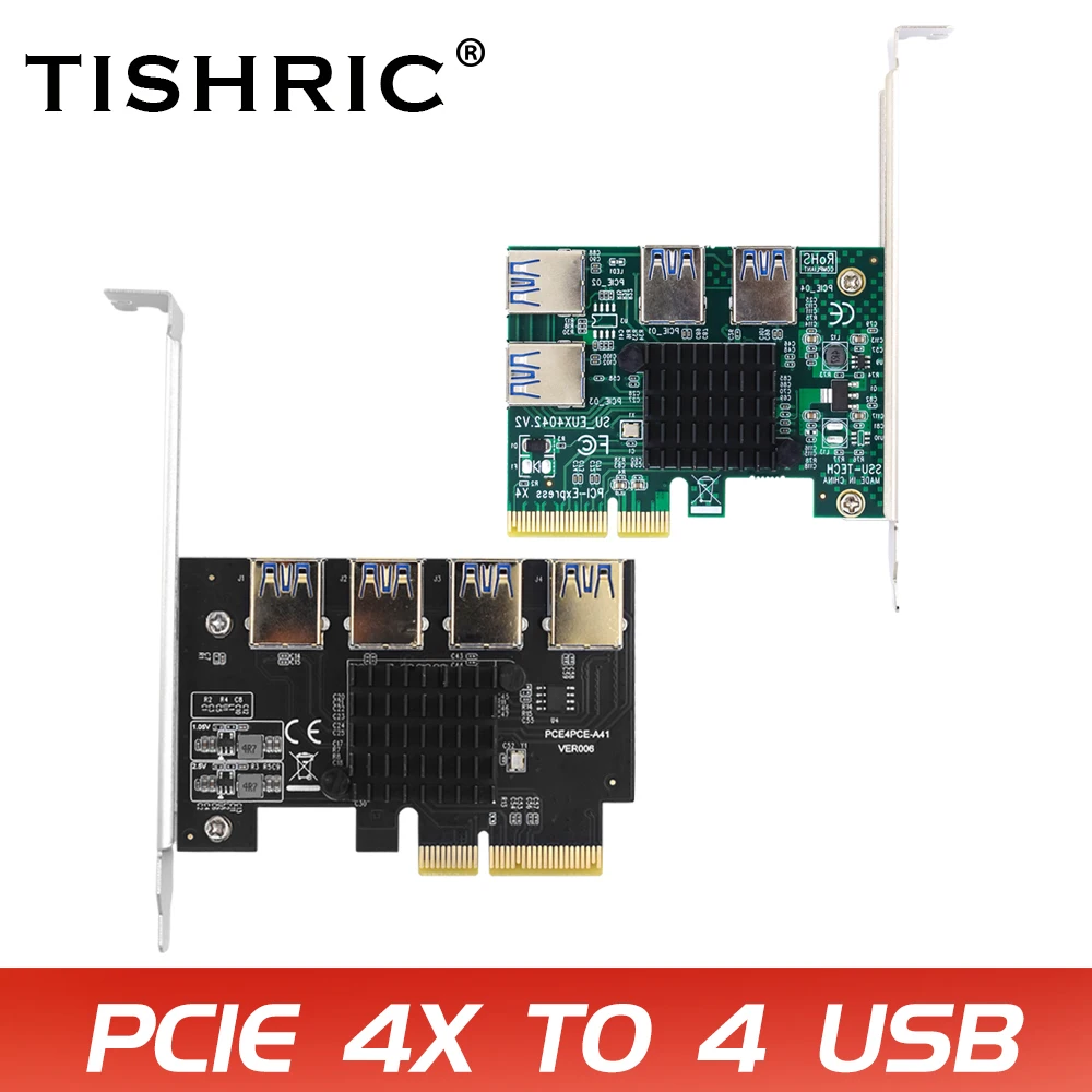 TISHRIC PCI Express множитель PCIE от 1 до 4 PCI множитель концентратора от 4X до 4 USB 3,0 адаптер PCIE Райзер для майнинга видеокарт