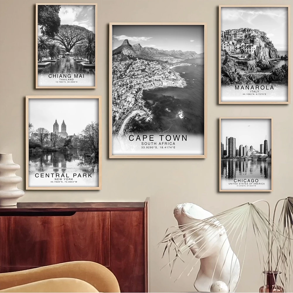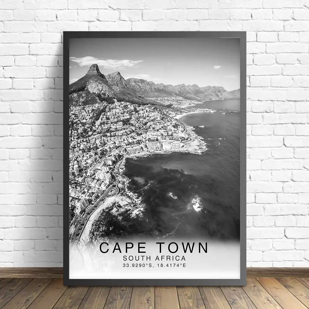 Черно-белый пейзаж Кейптаун, Южная Африка, настенный художественный достопримечательный пейзаж, дорожный постер для современной гостиной, домашний декор