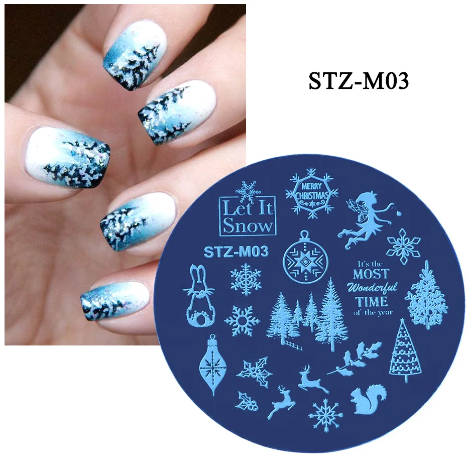 Рождественские круглые пластины для стемпинга ногтей со снежинками Рождественская елка Лось Зимний шаблон форма трафарет для дизайна ногтей инструменты