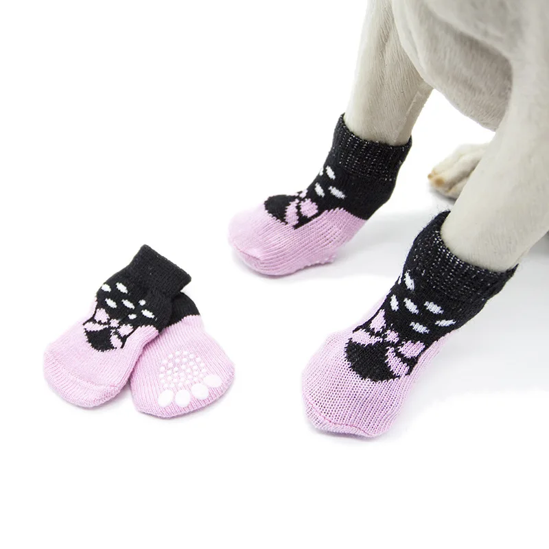 Зимние нескользящие носки для домашних животных 4 шт., теплые вязан...
