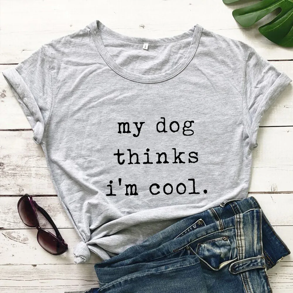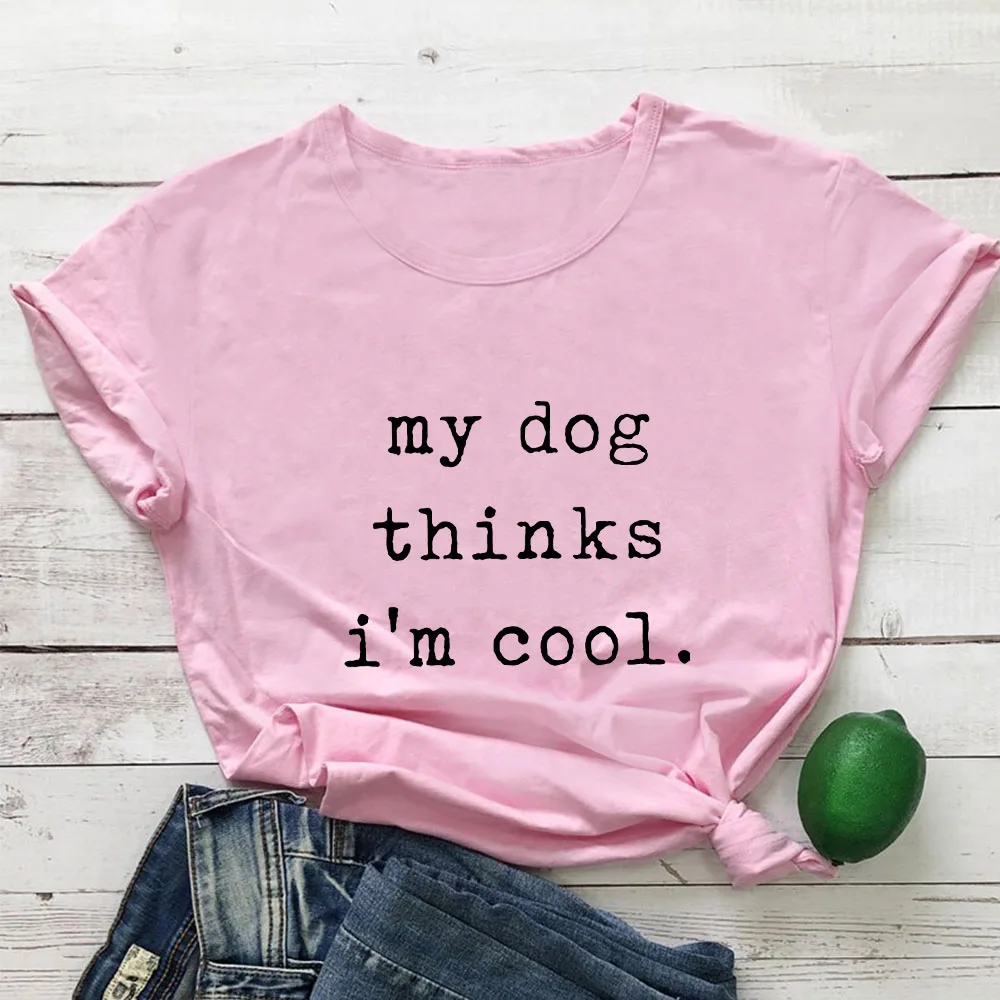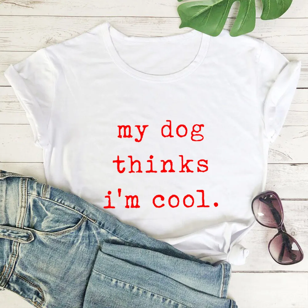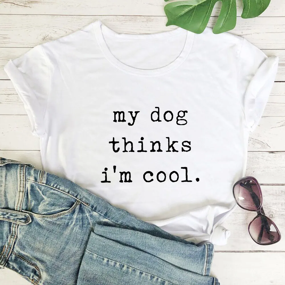 Моя собака думает, что я крутая футболка, женская футболка с круглым вырезом, топ, свободная повседневная футболка, женская модная дикая одежда, женская футболка