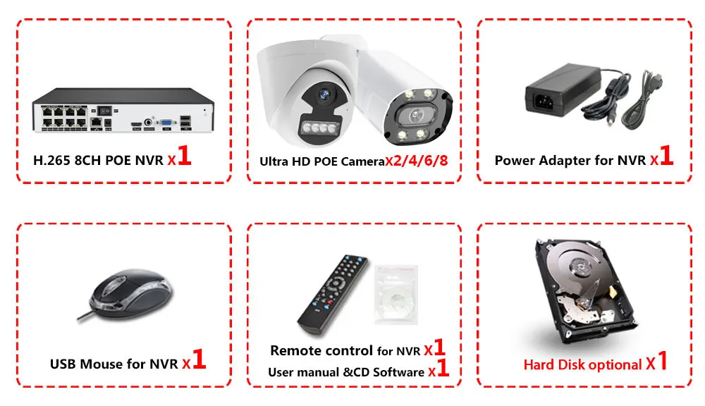 1. Все наши NVR и камеры являются реальными H.265 4K 8MP, NVR может поддерживать 8MP и 4K max, вы можете подключить 720p,1080p,3mp,4mp ,5mp, камеры 8mp & 4k с нашим POE NVR;