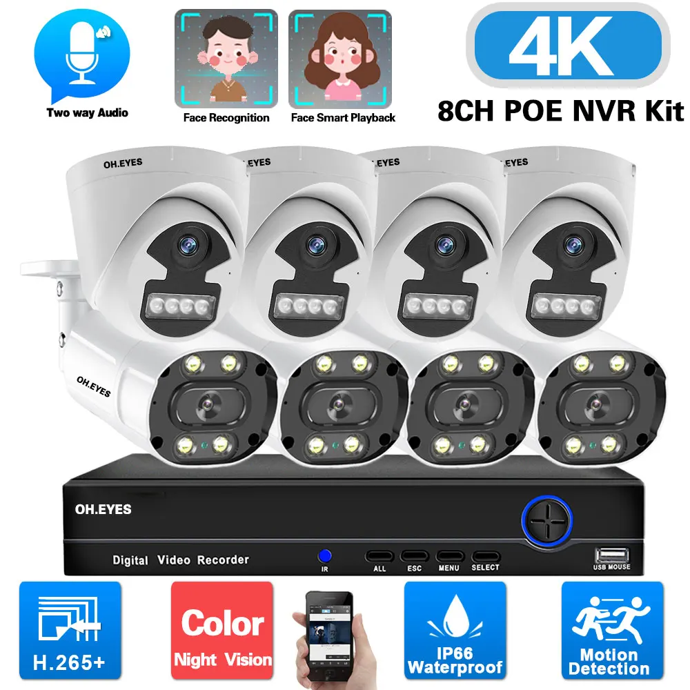 Распознавание лица 4K 8CH камера видеонаблюдения системы безопасности POE NVR Kit 8MP система видеонаблюдения с цветным ночным видением 4CH