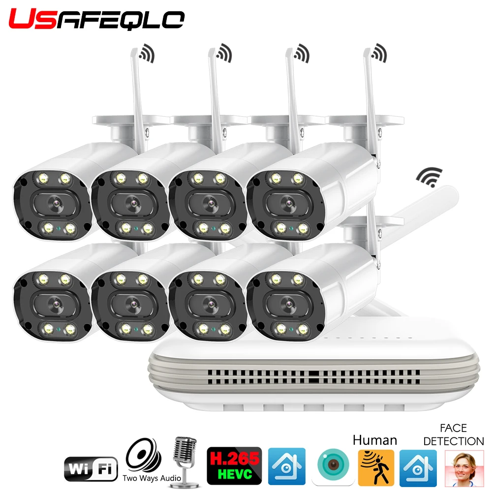 H.265 3MP 5MP HD аудио динамик Wi-Fi IP-камера с двумя светодиодами 8CH мини NVR CCTV комплект безопасности Беспроводная система видеонаблюдения