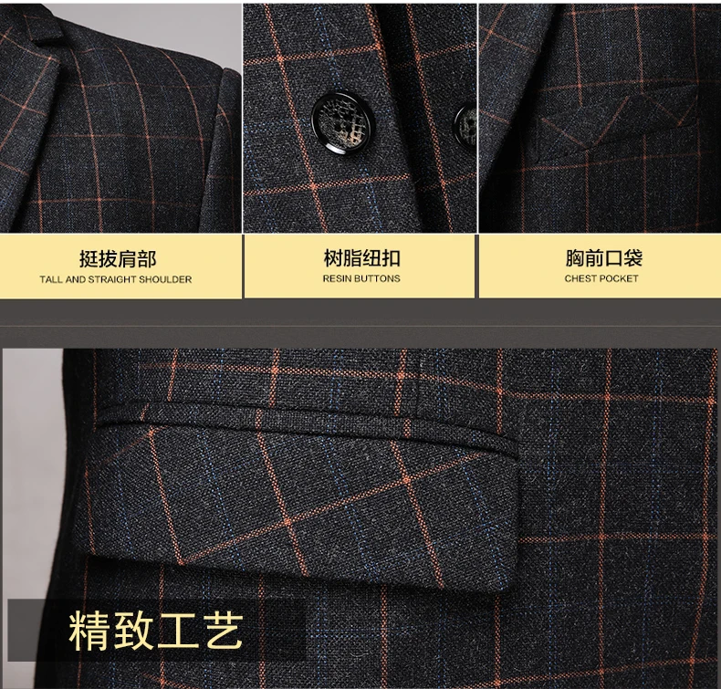 2022 клетчатый Блейзер и брюки, жилет, деловые мужские костюмы, ком...