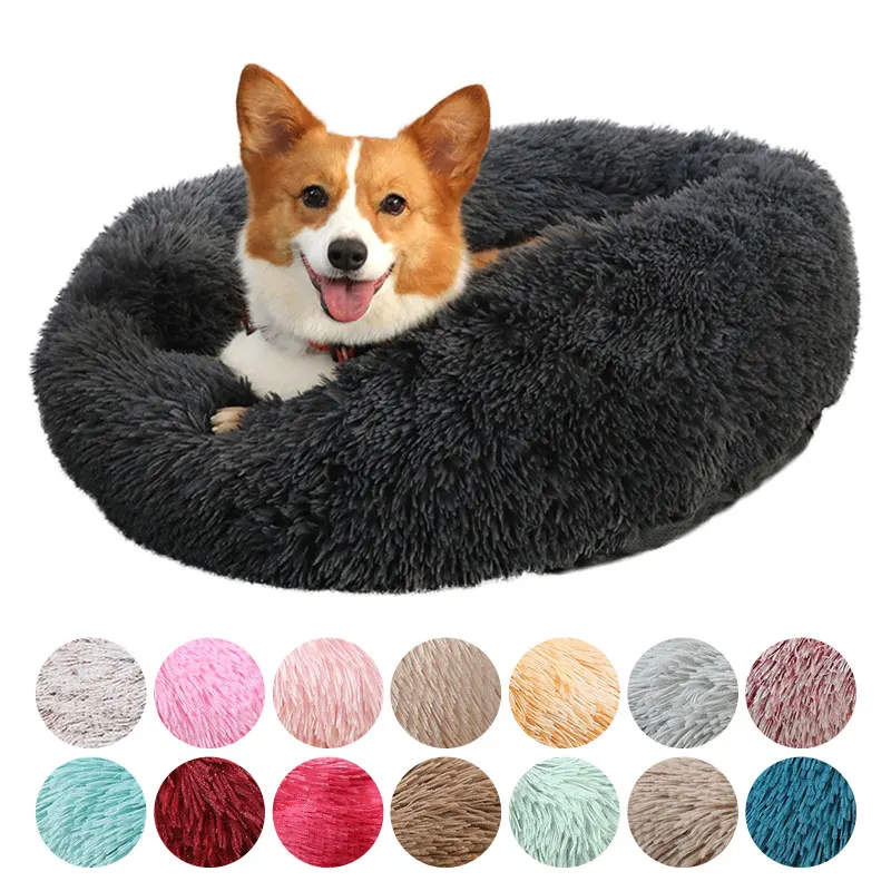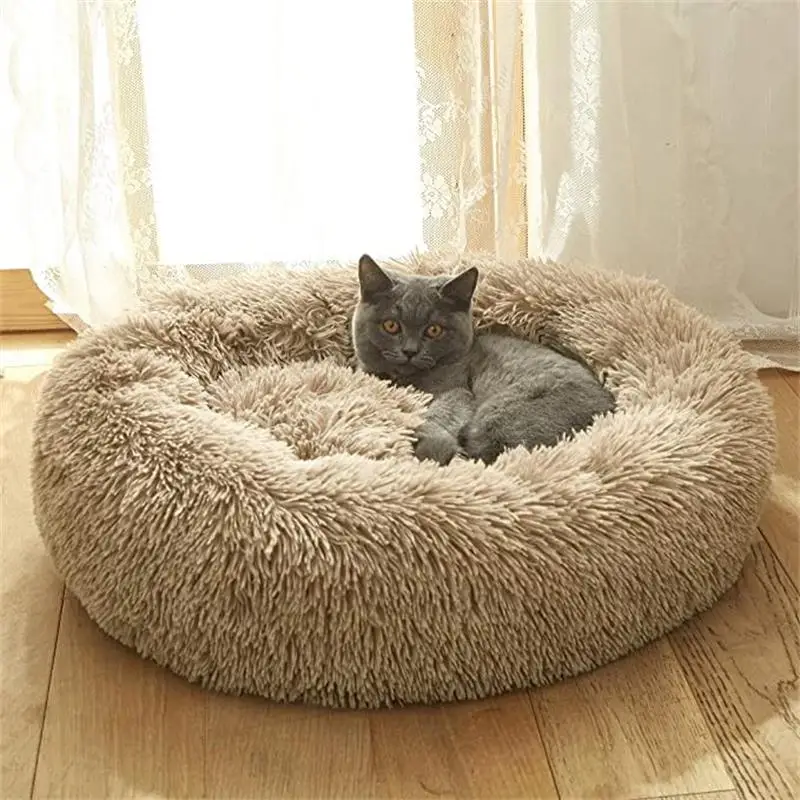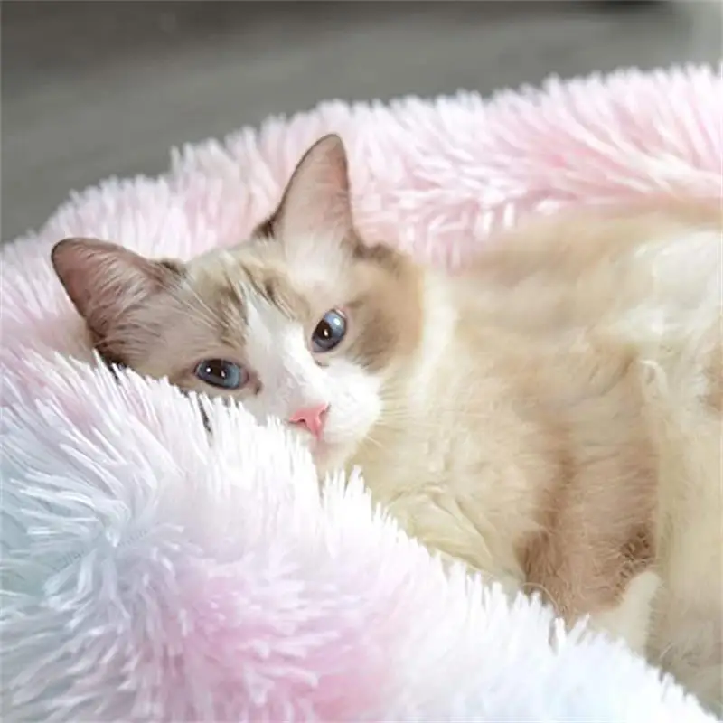 Кровать для домашнего питомца, Круглый теплый коврик для сна, длинная плюшевая подушка для щенка, портативные принадлежности для кошек, гнездо для дивана, аксессуары для собак