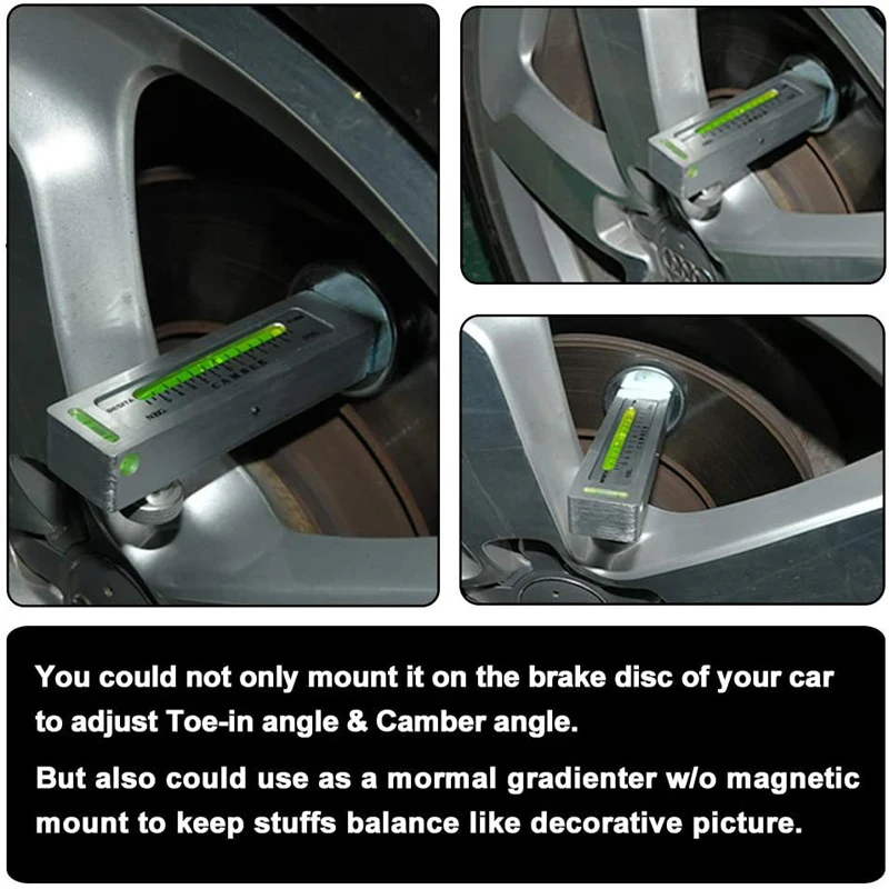 После использования данных измерений с четырьмя колесами для определения, например, Угол развала данных измерений локатора больше указанного значения минус 1 градус, затем вам нужно снять приспособление для позиционирования, снять шины и заменить необходимые детали для выравнивания четырех колес. В это время нам нужен наш Магнитный уровень. В прошлом операторы использовали свой собственный опыт для регулировки угла наклона, и иногда возникали ошибки. Используя наши измерительные приборы, они могут точно настроить необходимый угол измерения.