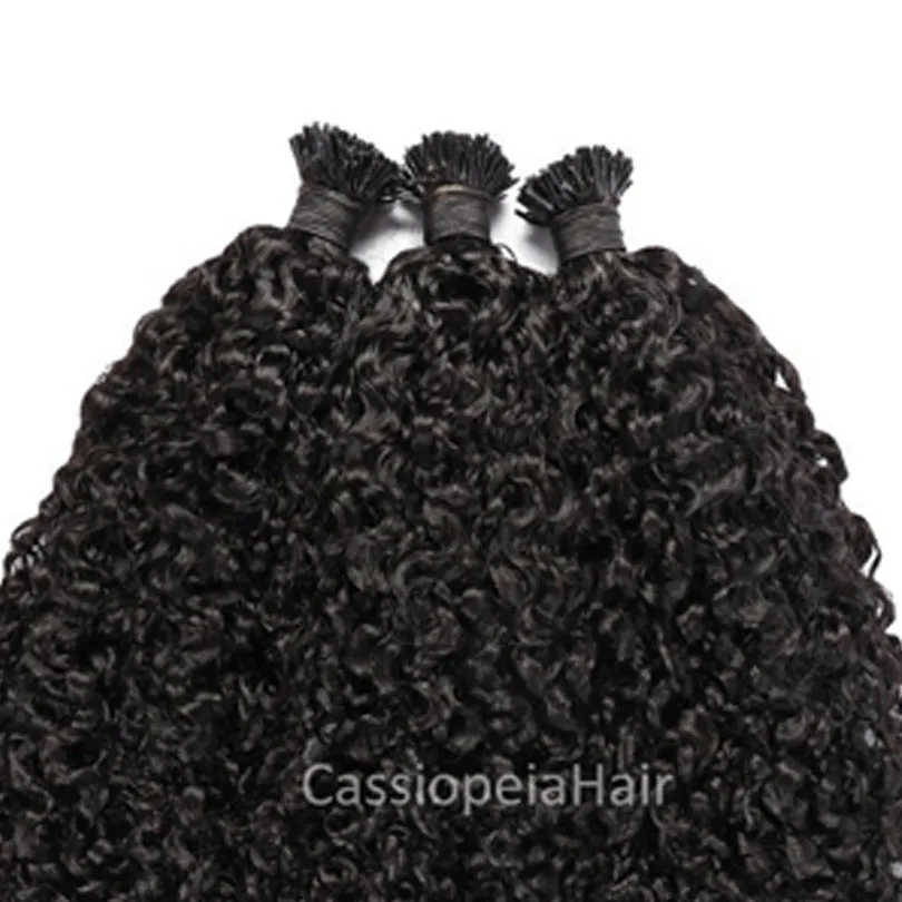 Sassy кудрявые I-образные волосы для наращивания, 100 прядей, Remy, бразильские человеческие волосы с микрокрасками, кератиновые волосы черного и коричневого цвета для женщин
