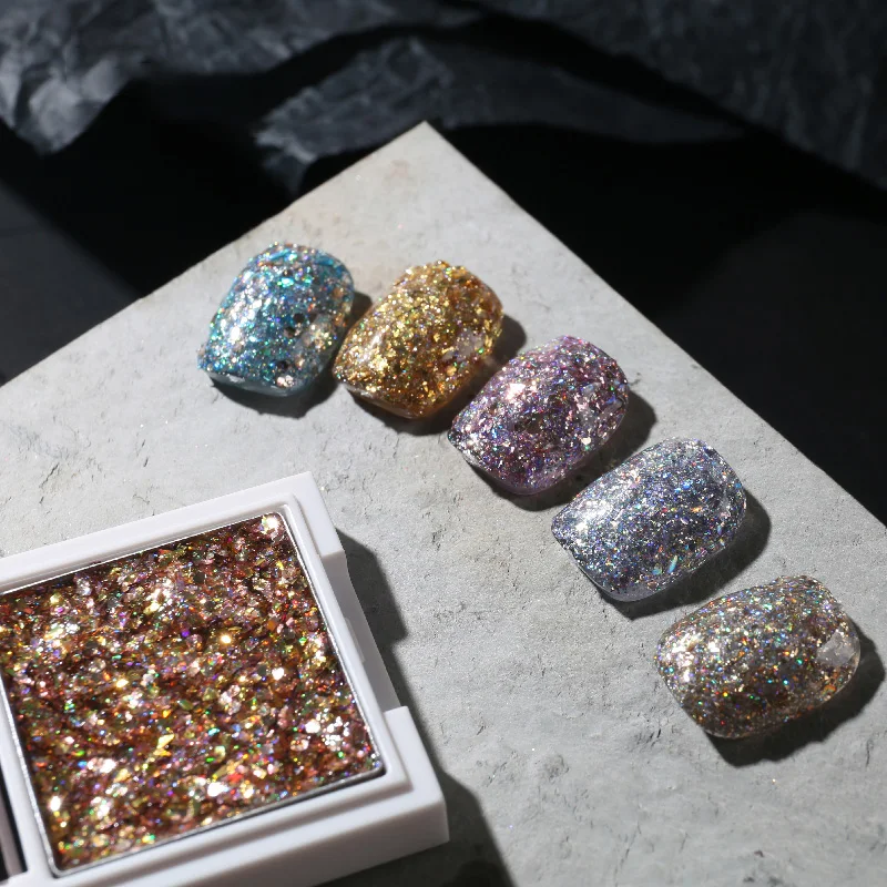по цвету значительного отличия с фото продавца нет,запах помады из 90х))) по консистенции с виду тоже как помада. наполняемость в ячейках разная,геля с блестками в половину меньше. упаковано в отдельный закрывающийся пакетик и сверху пупырчатая плёнка,все целое. после использования добавлю отзыв. думаю гель во флаконе с кистью использовать практичнее,так как его хватает на долго.