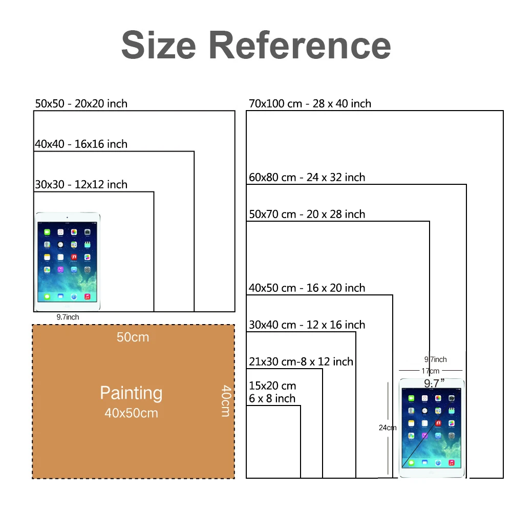 5.2X7.2inch 13cmX18cm 6X8inch 15cmX20cm 8X12inch 21cmX30cm 12X16inch 30cmX40cm 12X18inch 30cmX45cm 16X24inch 40cmX60cm 20X28inch 50cmX70cm 20X30inch 50cmX75cm