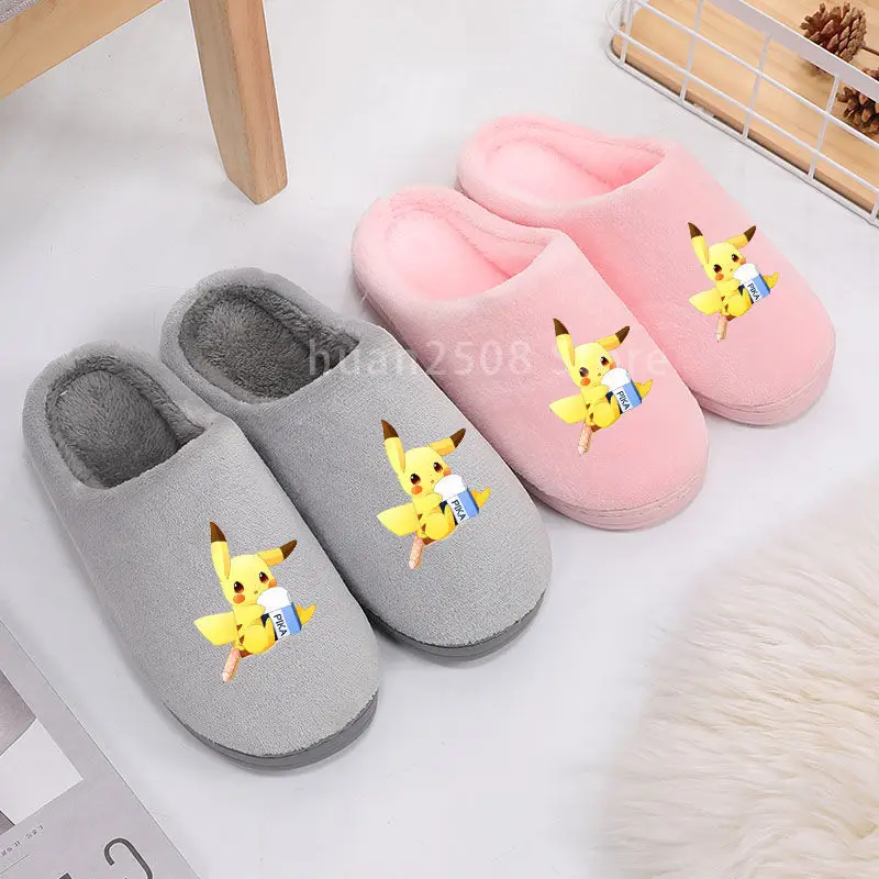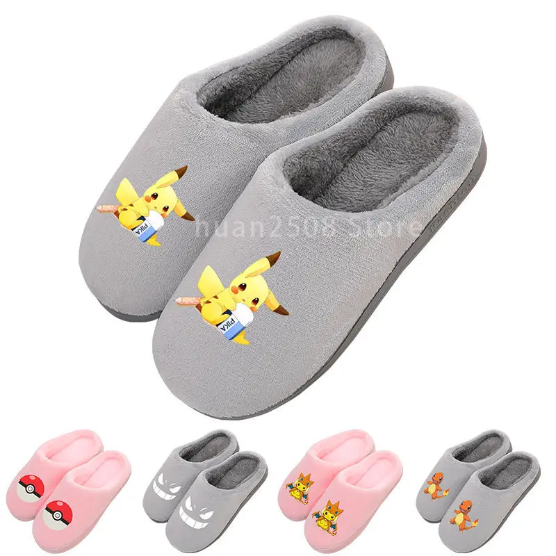 Тапочки хлопковые для пар, милые плюшевые тапки с рисунком Аниме Покемон, Пикачу, гэнгар, домашняя обувь, меховые шлепанцы