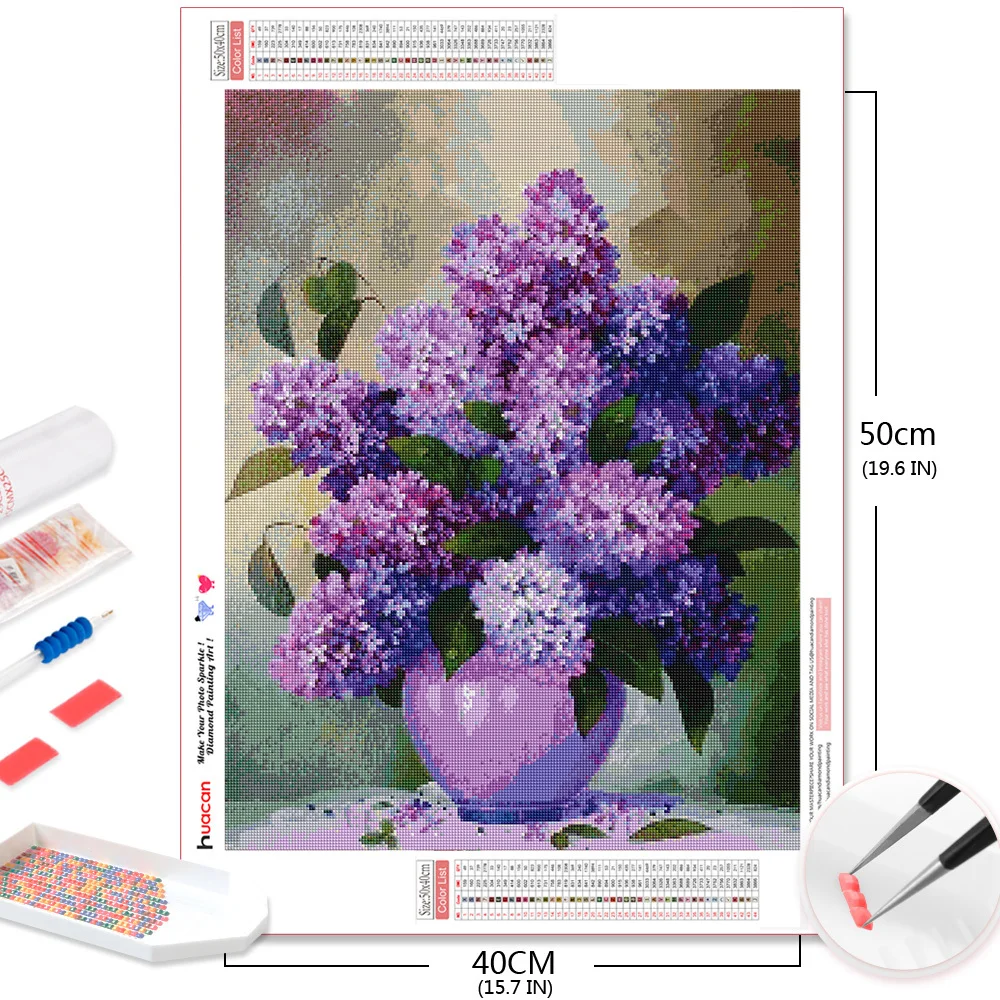 Набор для алмазной мозаики HUACAN, картина 5D с цветами сирени, ваза, полная выкладка, квадратнаякруглая, ручная работа, подарок