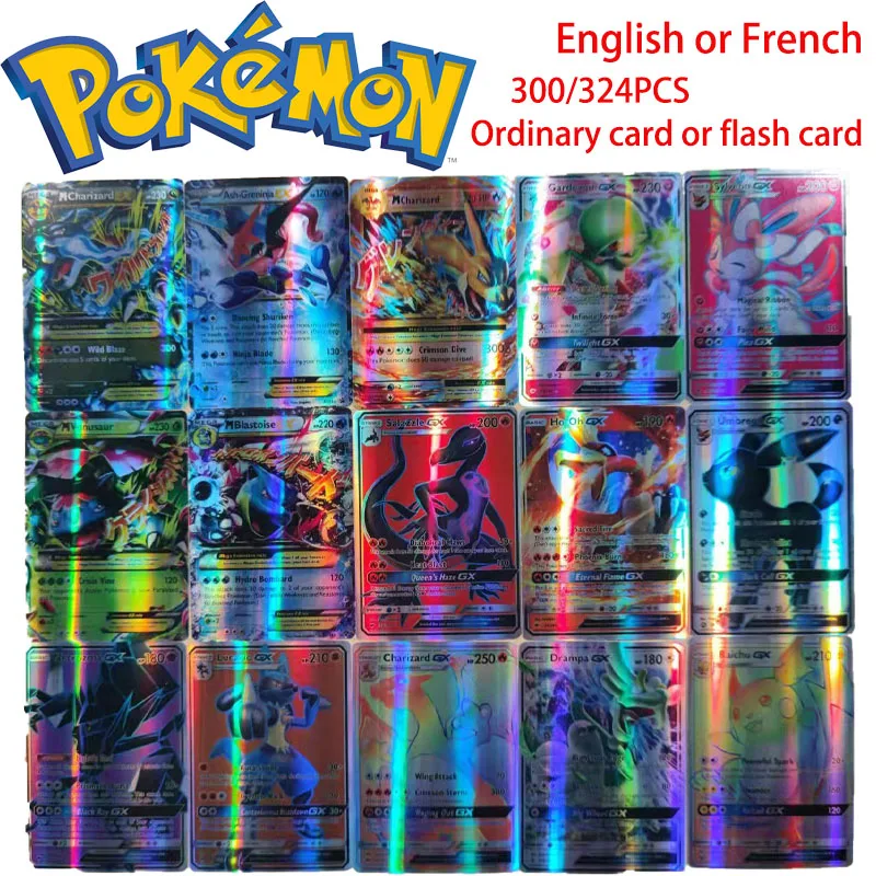 300324 шт. карта Pokemon или флеш-карта GX + MEGA + EX на английском или французском языках