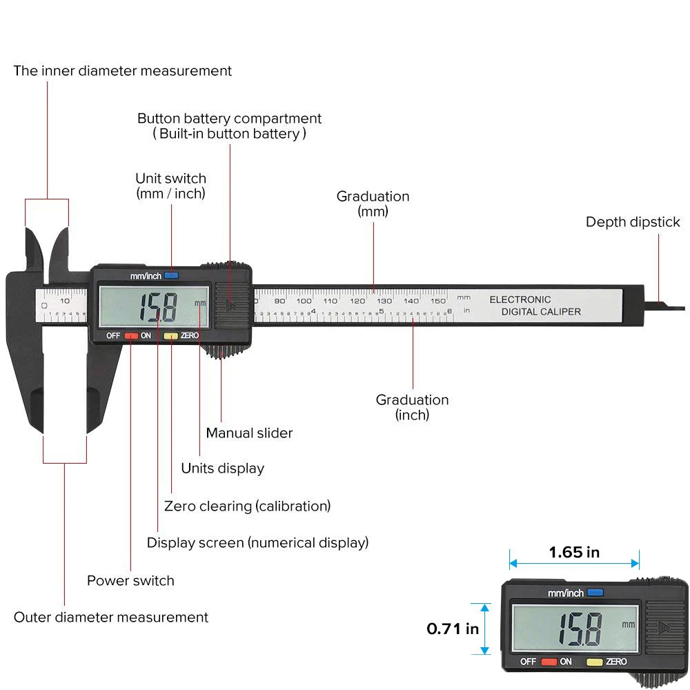Цифровой штангенциркуль 6 дюймов Электронный штангенциркуль Измерительный Инструмент МИКРОМЕТР пластиковая линейка 0-150 мм штангенциркуль
