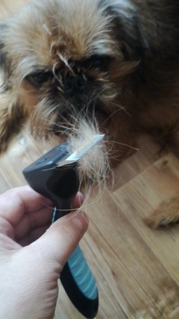 Едва соответствует описанию. У меня есть щенок Pug, и он очень эффективен, удаляя избыток волос.