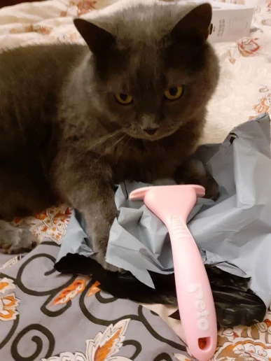 очень быстрая доставка, отличный товар! прекрасно вычесывает пух. кошку сначала надо расчесать обычной кошачей расческой, иначе ей будет больно
