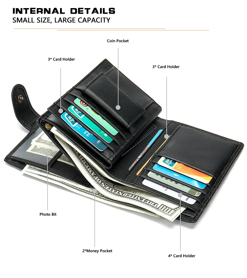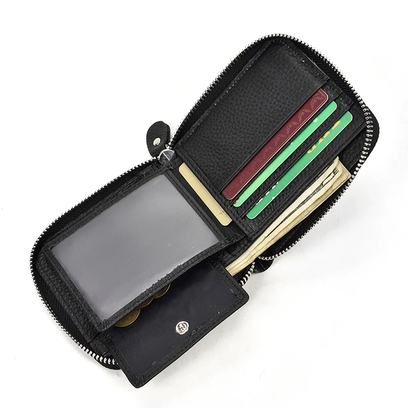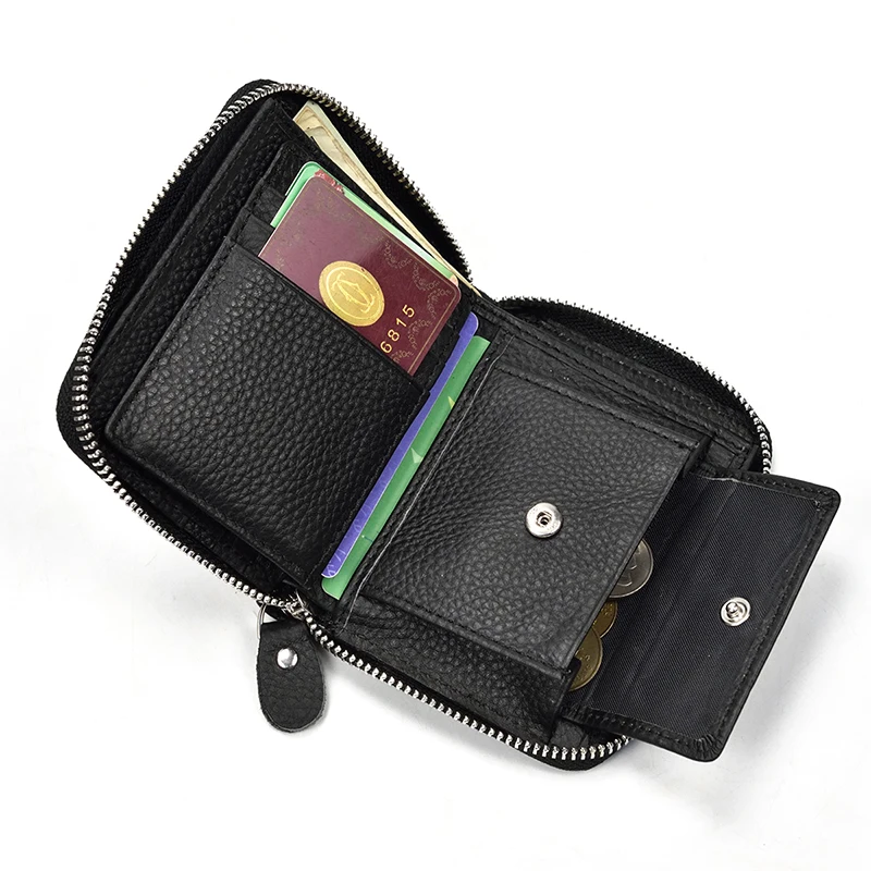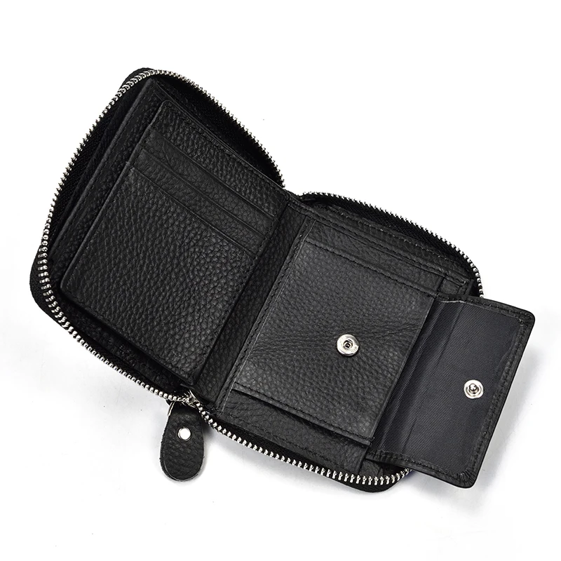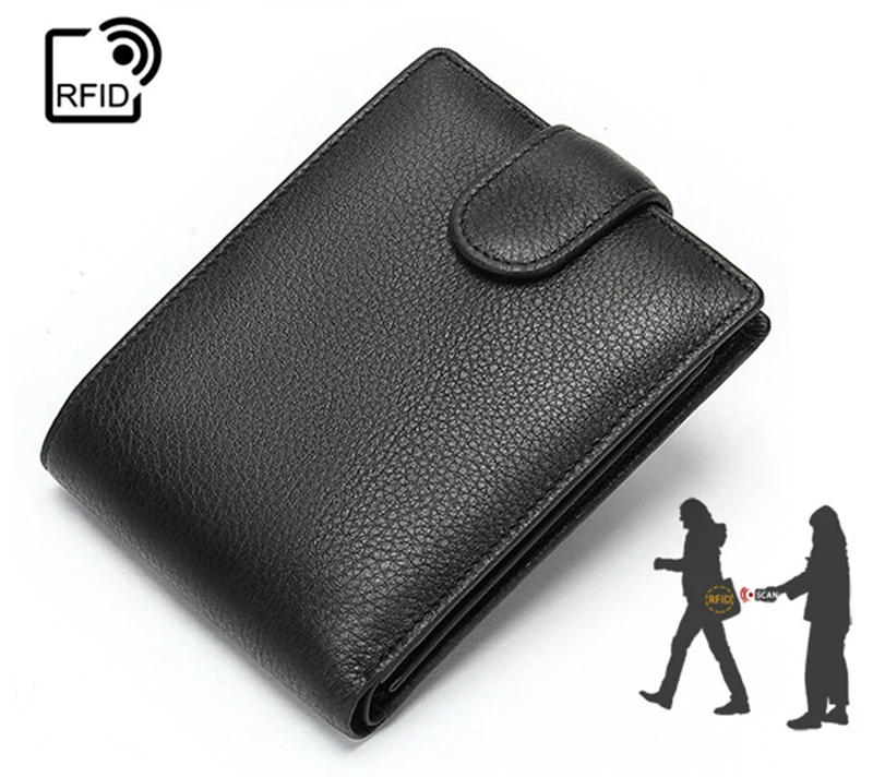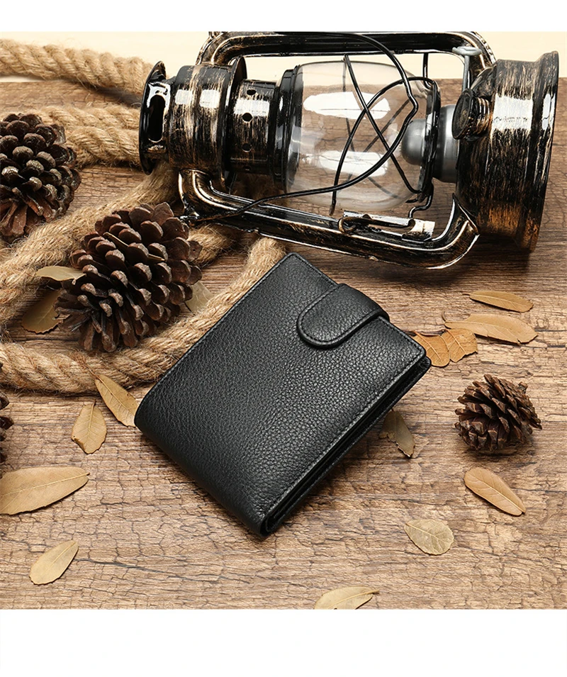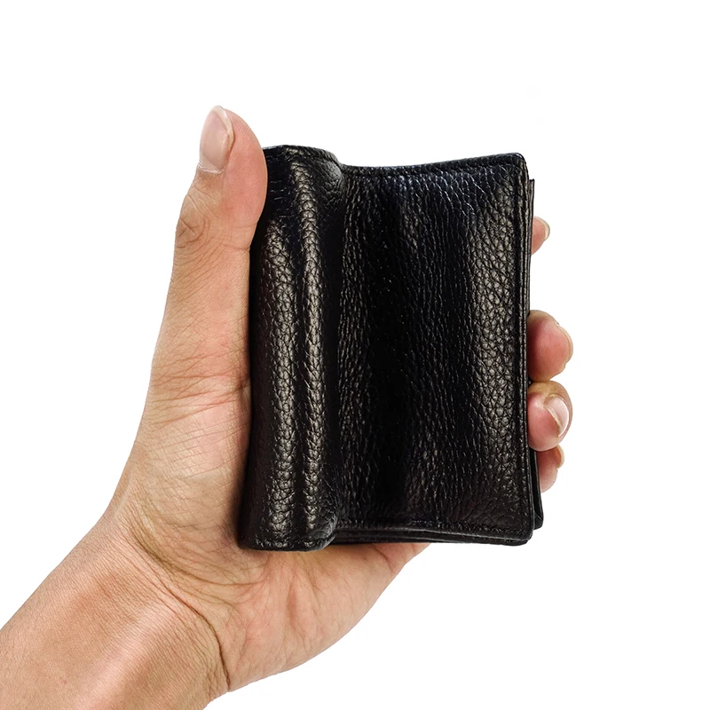 Мужской черный кошелек из натуральной кожи, короткий кошелек, кошелек из мягкой воловьей кожи RIFD для мужчин и женщин, кошелек для денег и карт, кошелек для монет