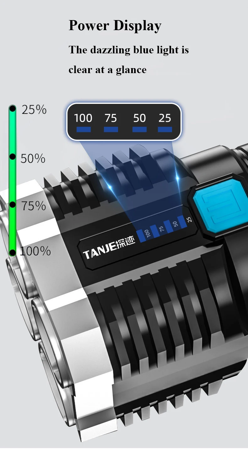 Четырехъядерный яркий светодиодный фонарик, сисветильник, перезаряжаемый супер яркий фонарь, уличный Многофункциональный точесветильник светильник для кемпинга, фонарик