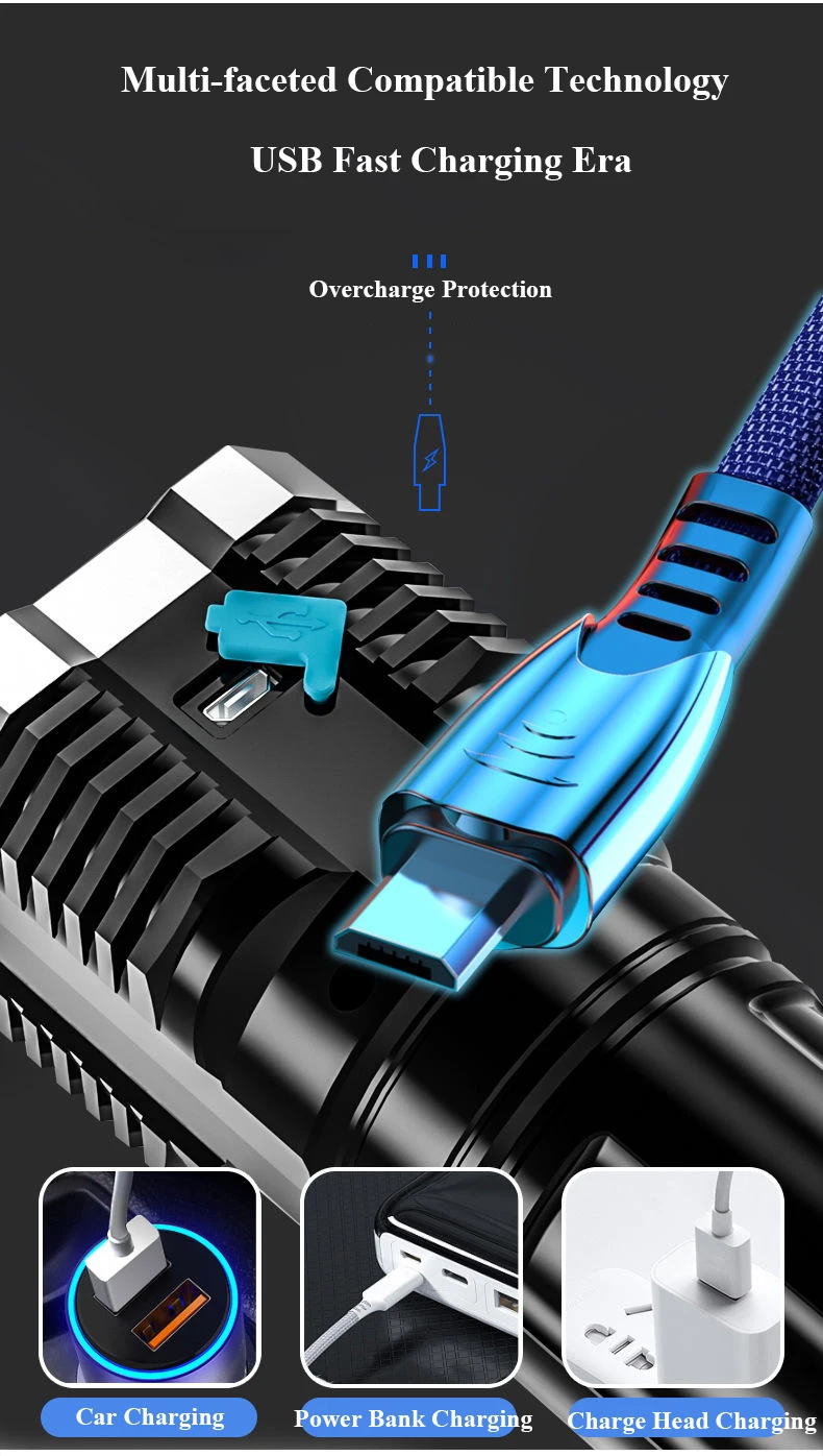 Мощный светодиодный фонарик с зарядкой от USB, Ультраяркий фонарь с...