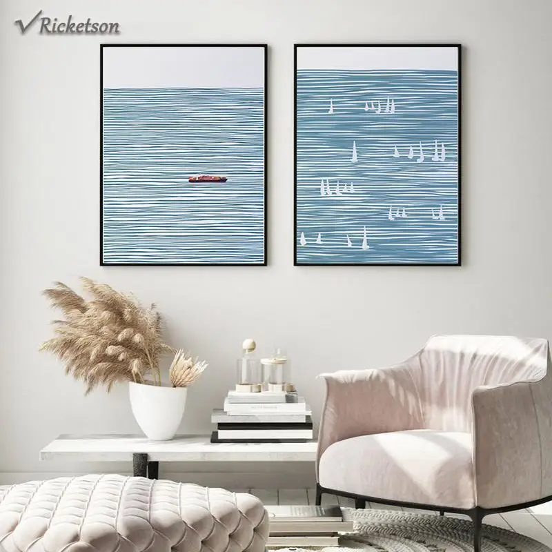 Настенная Картина на холсте с изображением синего моря водная волна...