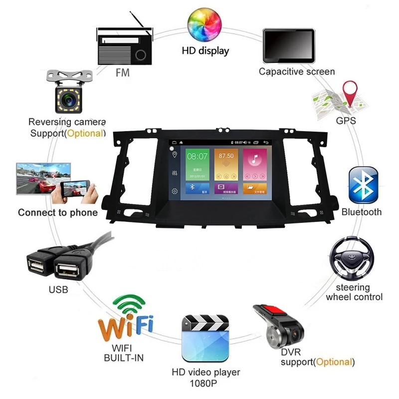 1. Разрешение экрана: 1280*720 или выше, емкостный 5 точек мульти-касания, с функцией двойной зоны Bluetooth 5,0 ручные телефонные звонки синхронизация список контактов