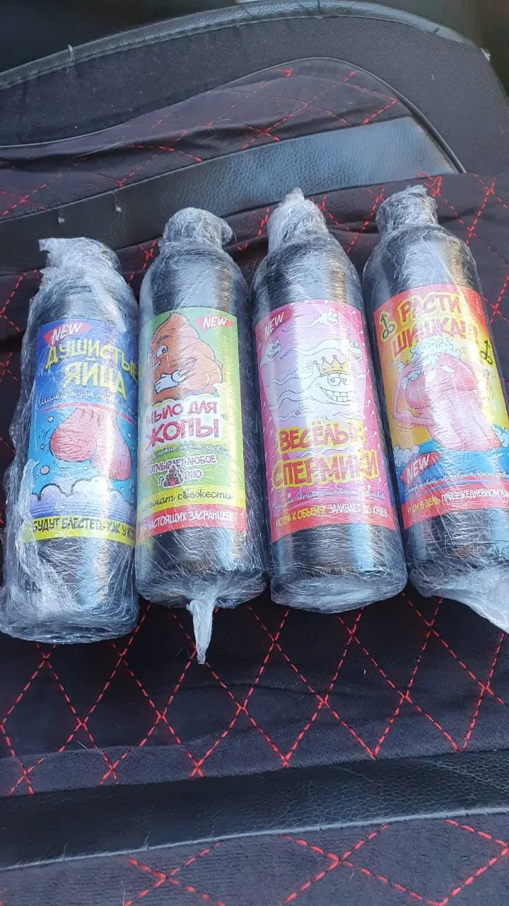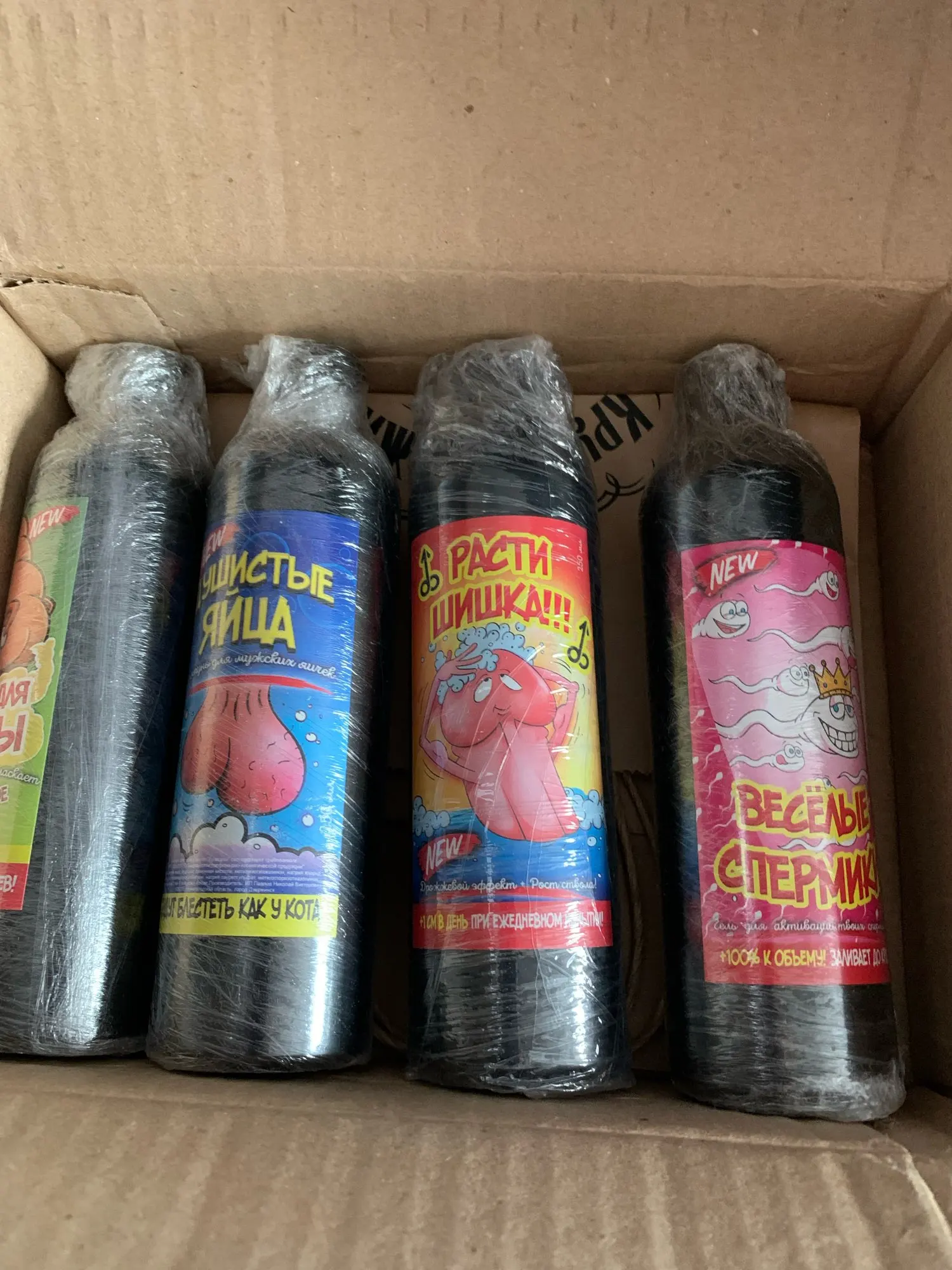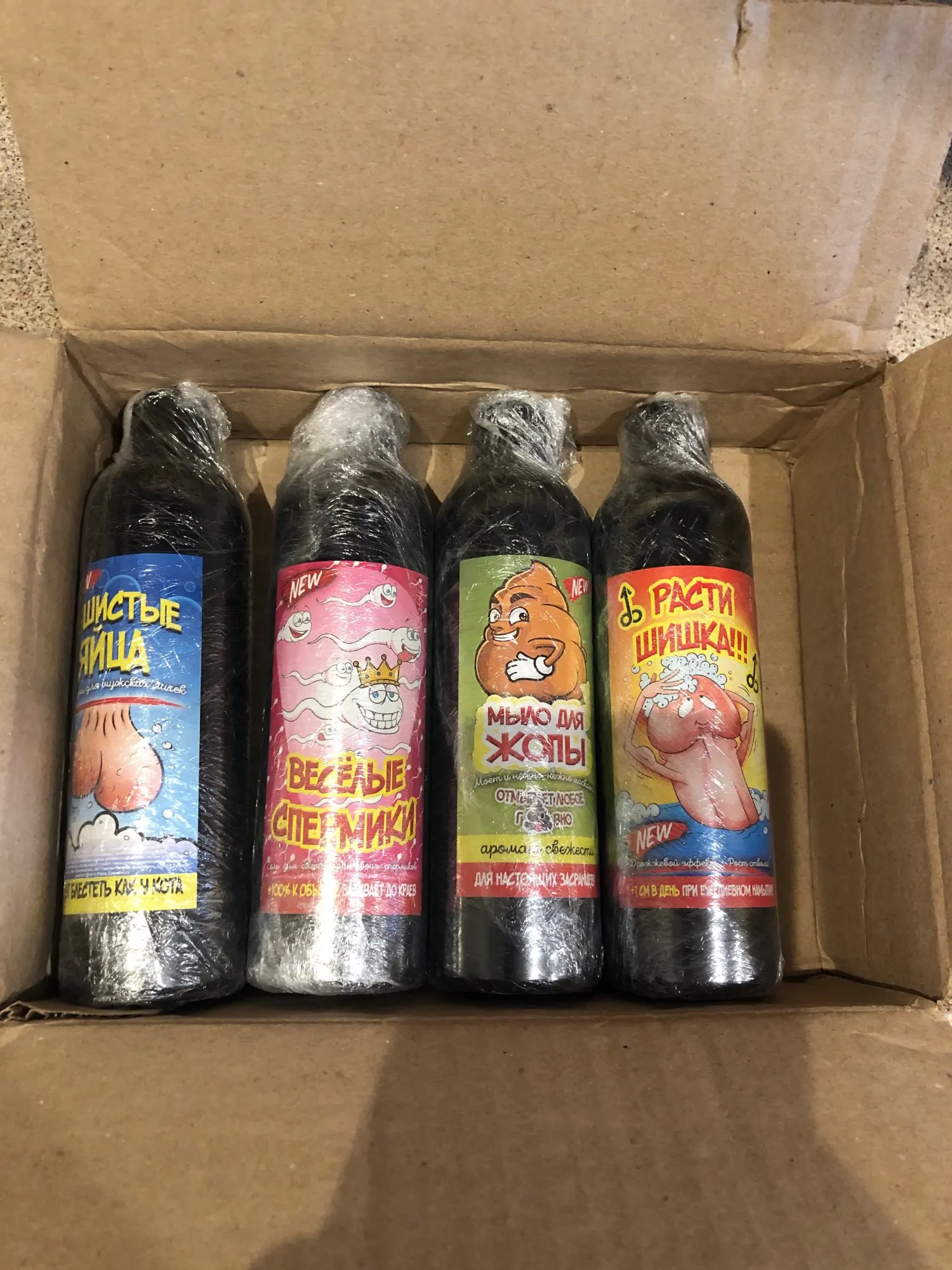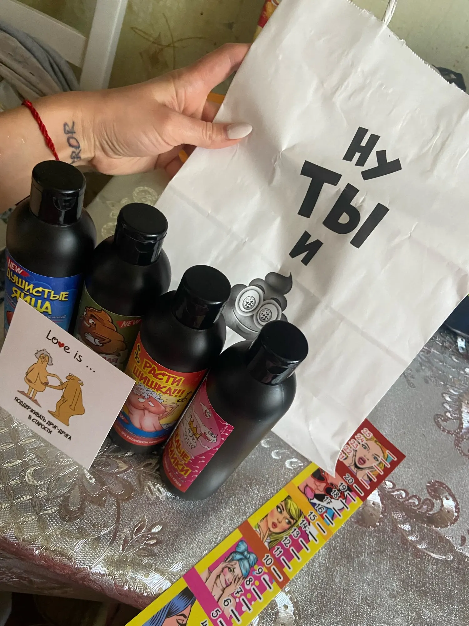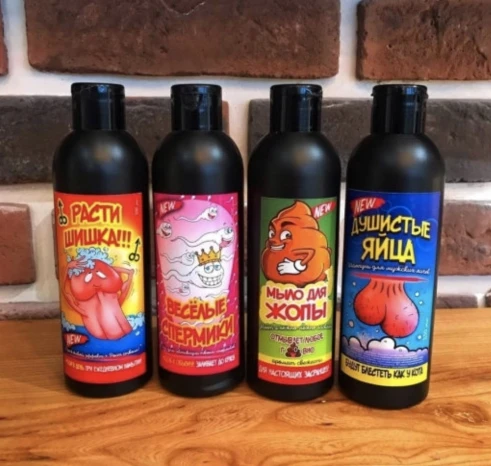 Из плюсов могу выделить: +оригинальные надписи +быстрая доставка +приятный запах Из минусов: -цена завышена (для обычных черных баночек с бумажной этикеткой, которая отвалится при намокании) - ни в описании товара, ни на самих гелях нет состава (что там в них залито, не понятно) В целом, не советую к покупке, т.к. такой подарок подходит разве только для мытья полов, а распечатать весёлые картинки и наклеить на банку каждый может)))