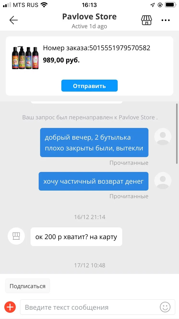 Заказывала шампуни 26.11, пришло в СПб за неделю! Постоянно приходили смс-оповещения о статусе заказа. Шампуни прикольные, надписи зачет, в подарок мужчине подойдёт 100%. В подарок положили подарочный пакет, линейку и открытку. Шампуни вкусно пахнут и все запахи разные. Единственный минус - было бы круто добавить на шампуни их состав или где-нибудь дополнительно это написать. С продавцом не общались.