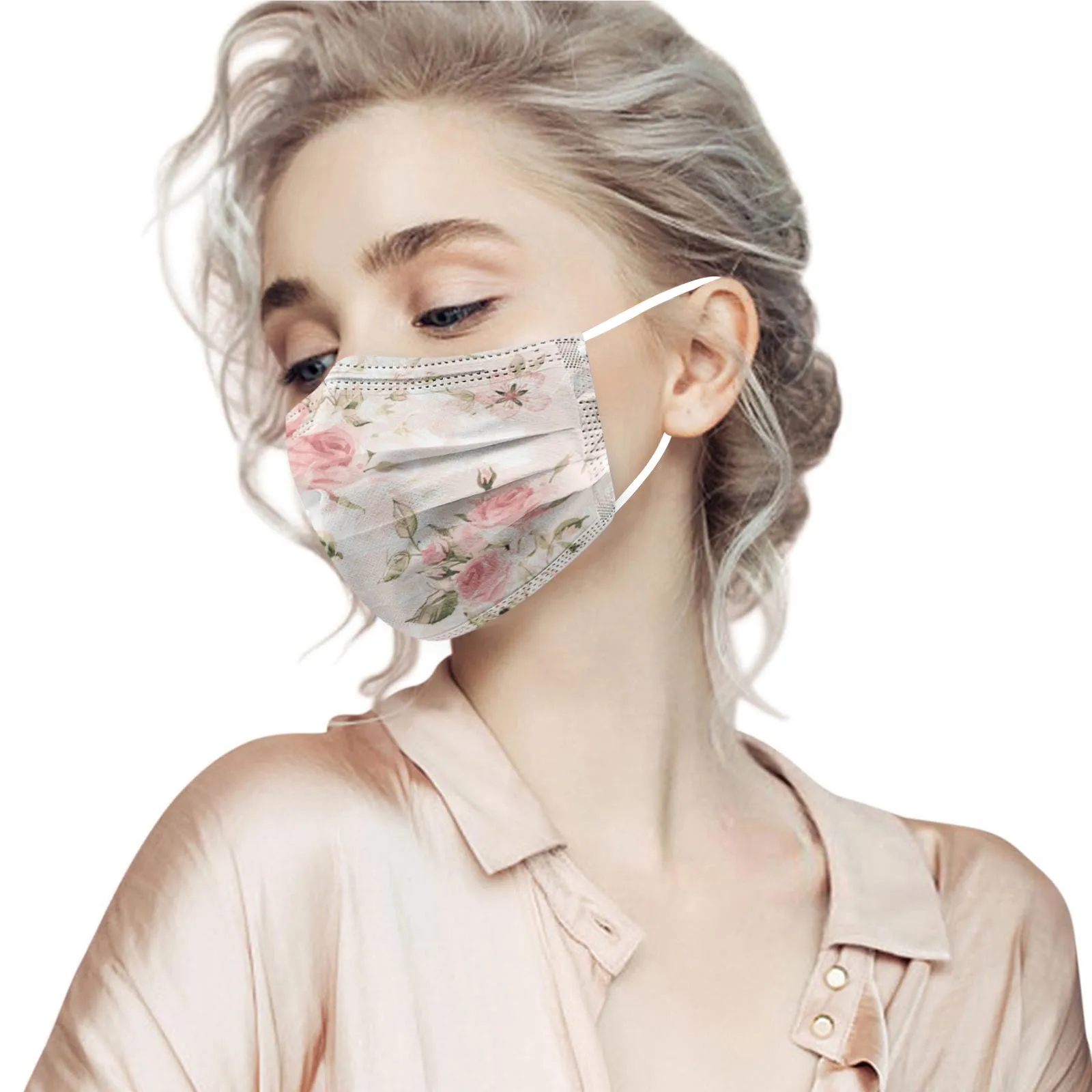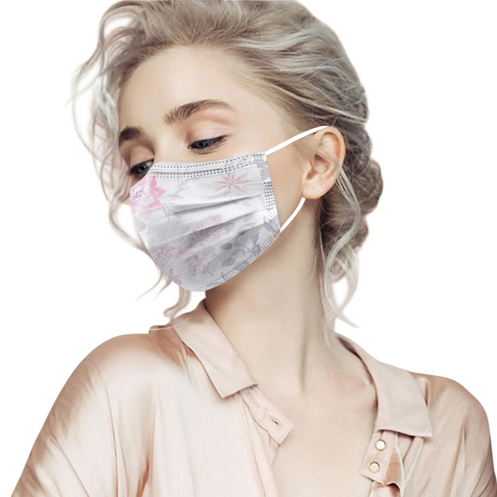 50 шт. взрослых ежедневная красивый кардиган, с цветочным принтом, 3-Слои одноразовая маска для лица