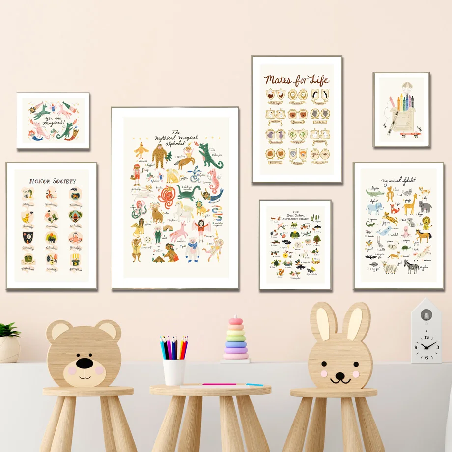 Мультяшные животные Алфавит цифры скандинавские плакаты и принты об...