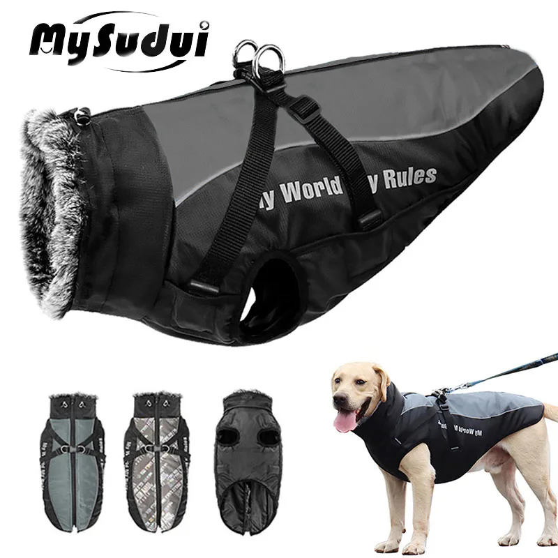 MySudui теплая Светоотражающая куртка для собак зимняя водонепроницаемая пуховая куртка с ремнем одежда жилет для средних и крупных собак для улицы