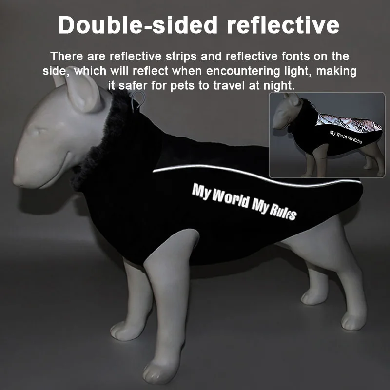 Тип: теплая Светоотражающая куртка для собакЦвет: черный/серый, черный/белыйРазмер: XL / 2XL / 3XL / 4XL / 5XL / 6XLМатериал: хлопок + водонепроницаемый ОксфордПодходит для: зимняя одежда для средних и больших собакПодходит для: собак для прогулок на открытом воздухе