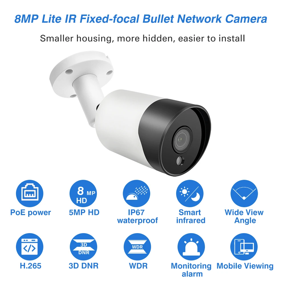 Совместимая с Hikvision IP Bullet камера 2 шт. PoE 8 Мп Встроенный ...