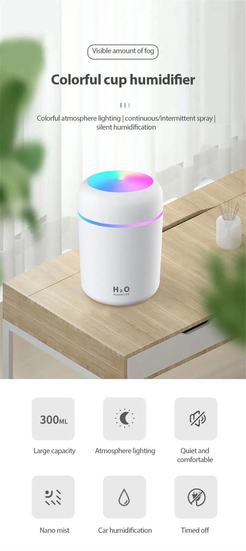 Мини увлажнитель масла диффузор. 300 мл резервуар для воды. С красочным ночным светильник.
