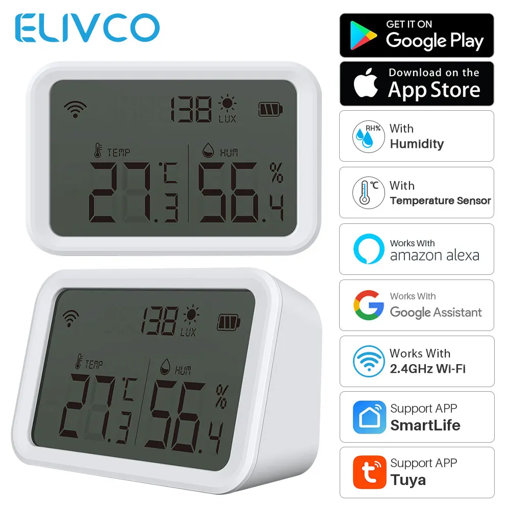 Датчик температуры и влажности Tuya Wi-Fi, комнатный гигрометр для умного дома SmartLife, работает с Alexa