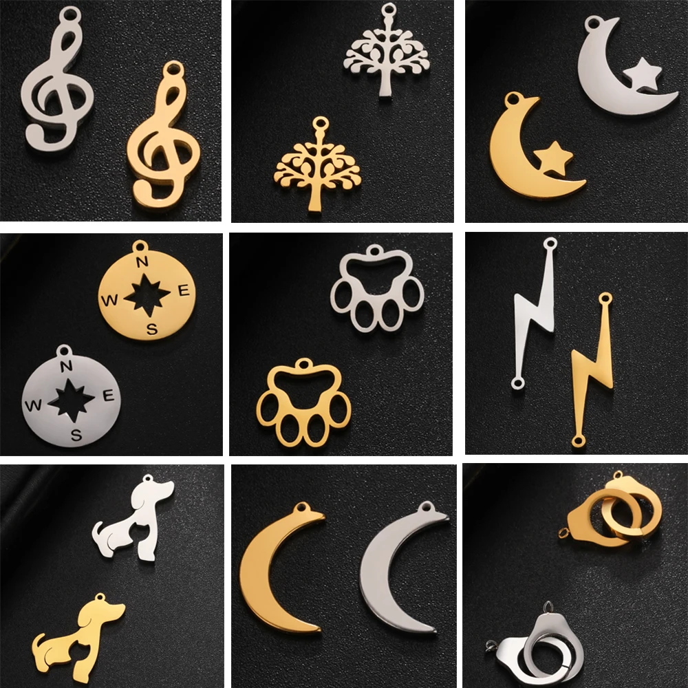 5 шт.лот DIY Подвески для серег ожерелье браслет Музыка Примечание дерево луна звезда кулон из нержавеющей стали для ювелирных изделий