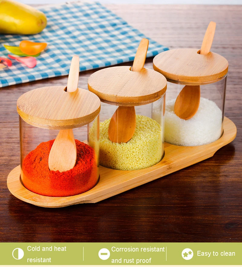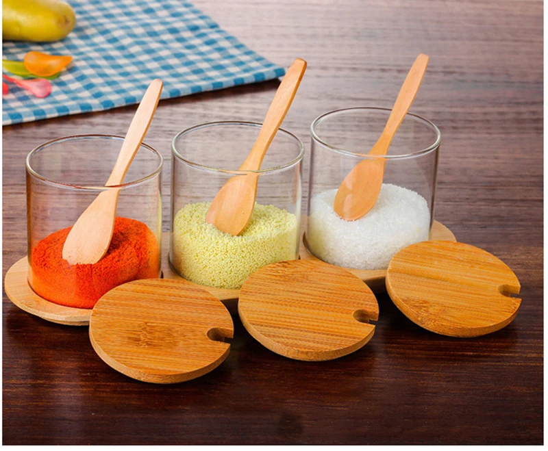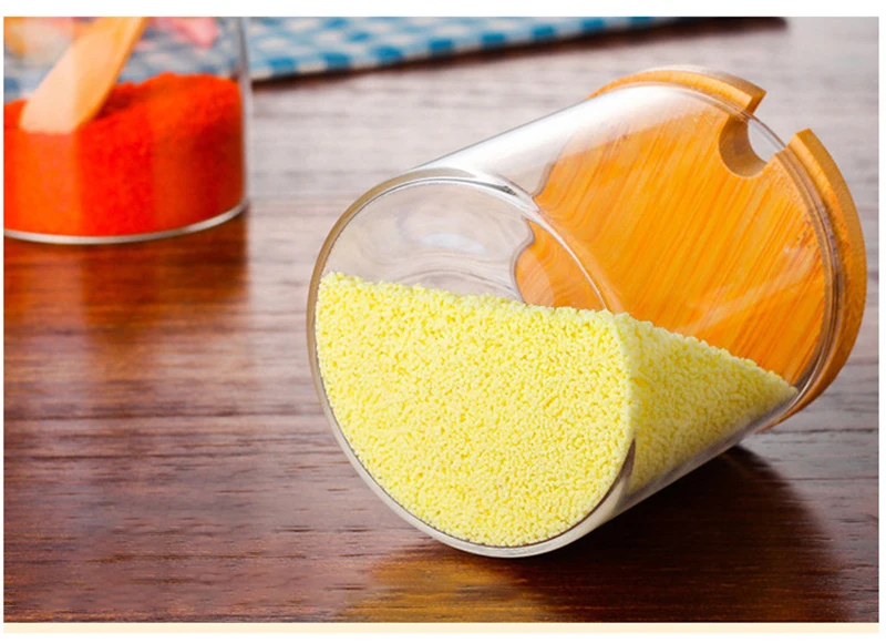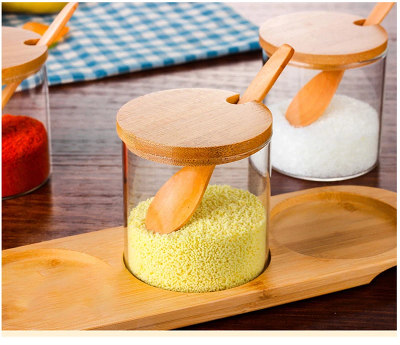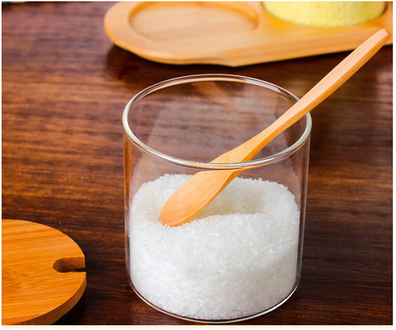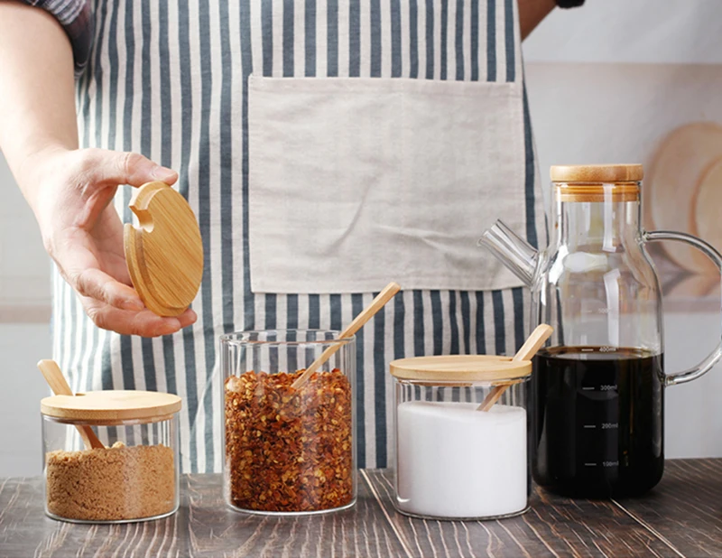 Стеклянная банка для специй, бутылка для приправ, сахарница с бамбу...